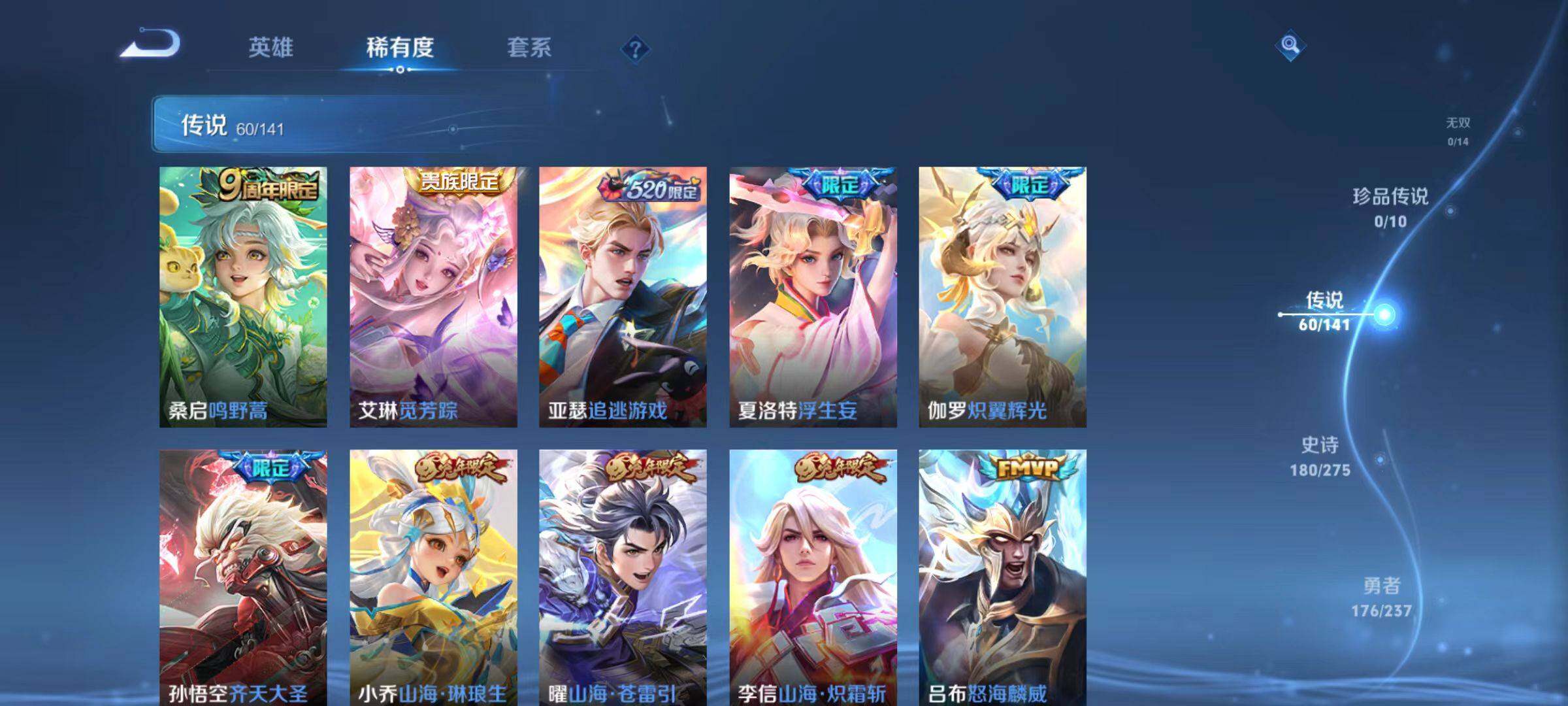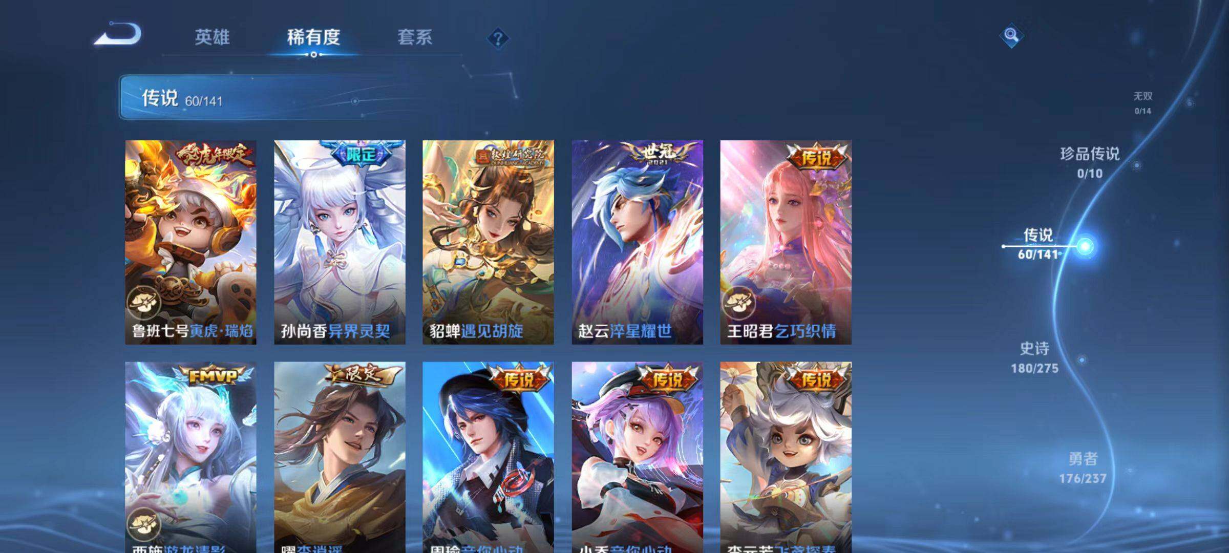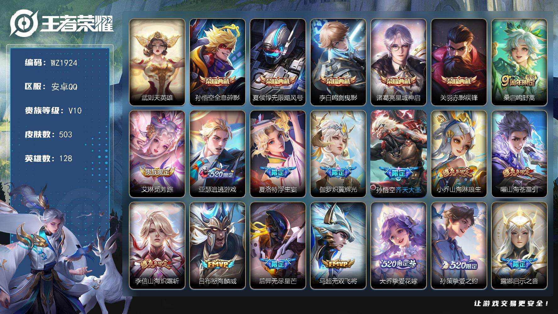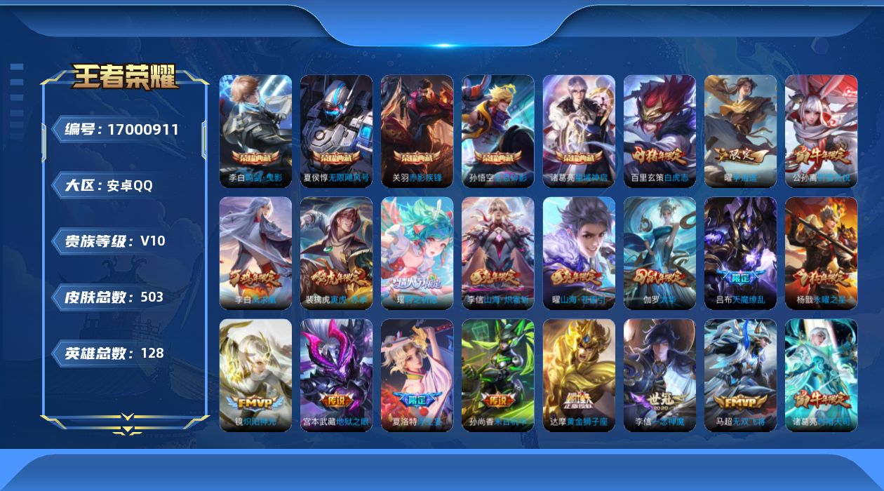 [17000911]背包多一水 安卓Q-V10-最强王者段位-128英雄-503皮肤-5典藏皮肤-1典藏英雄-60传说-178史诗