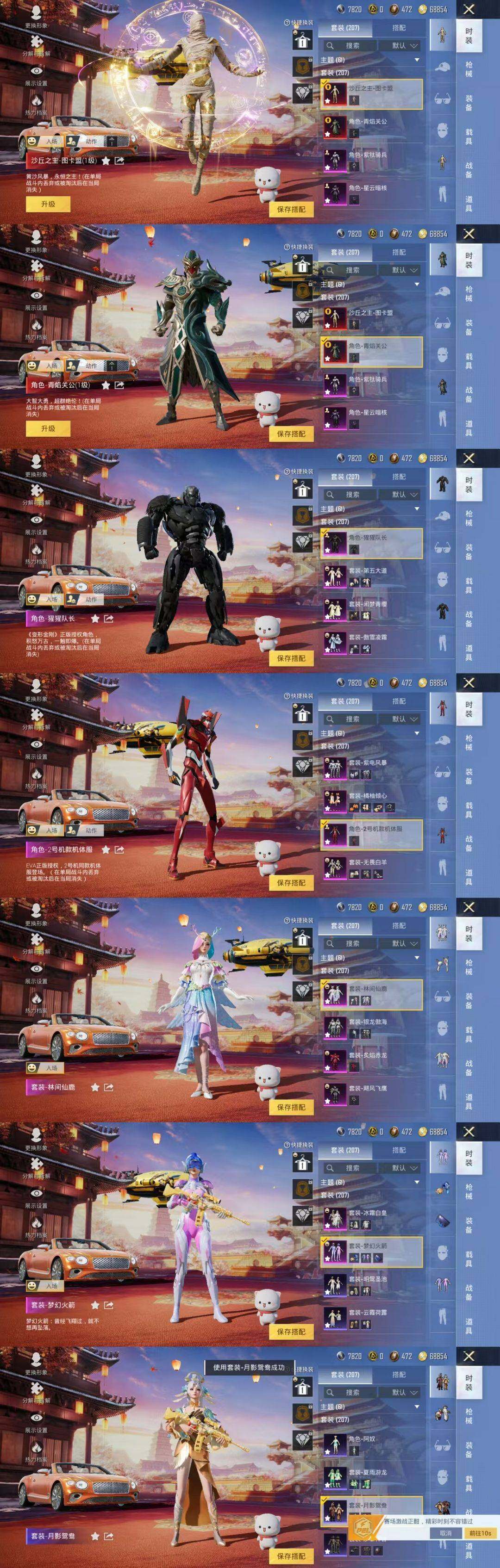套装-龟仙人,套装-破蛋小黄鸡,套装-漫步者,套装-雪山精英,套装-怪笑疯兔,套装-瑞龙福将