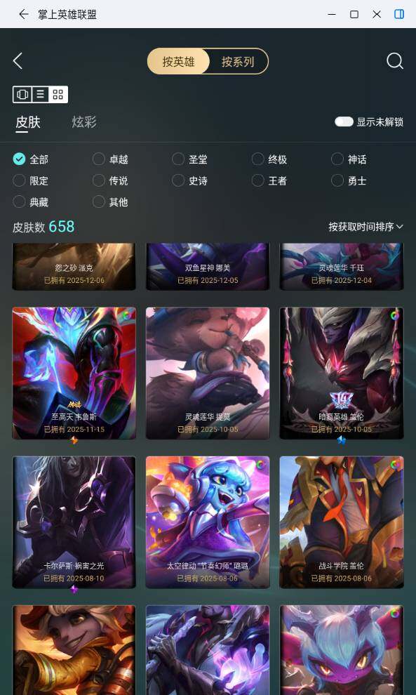 [16965023]未定级段位-172英雄-658皮肤-99炫彩-3终极-6神话-120限定-55传说-177史诗