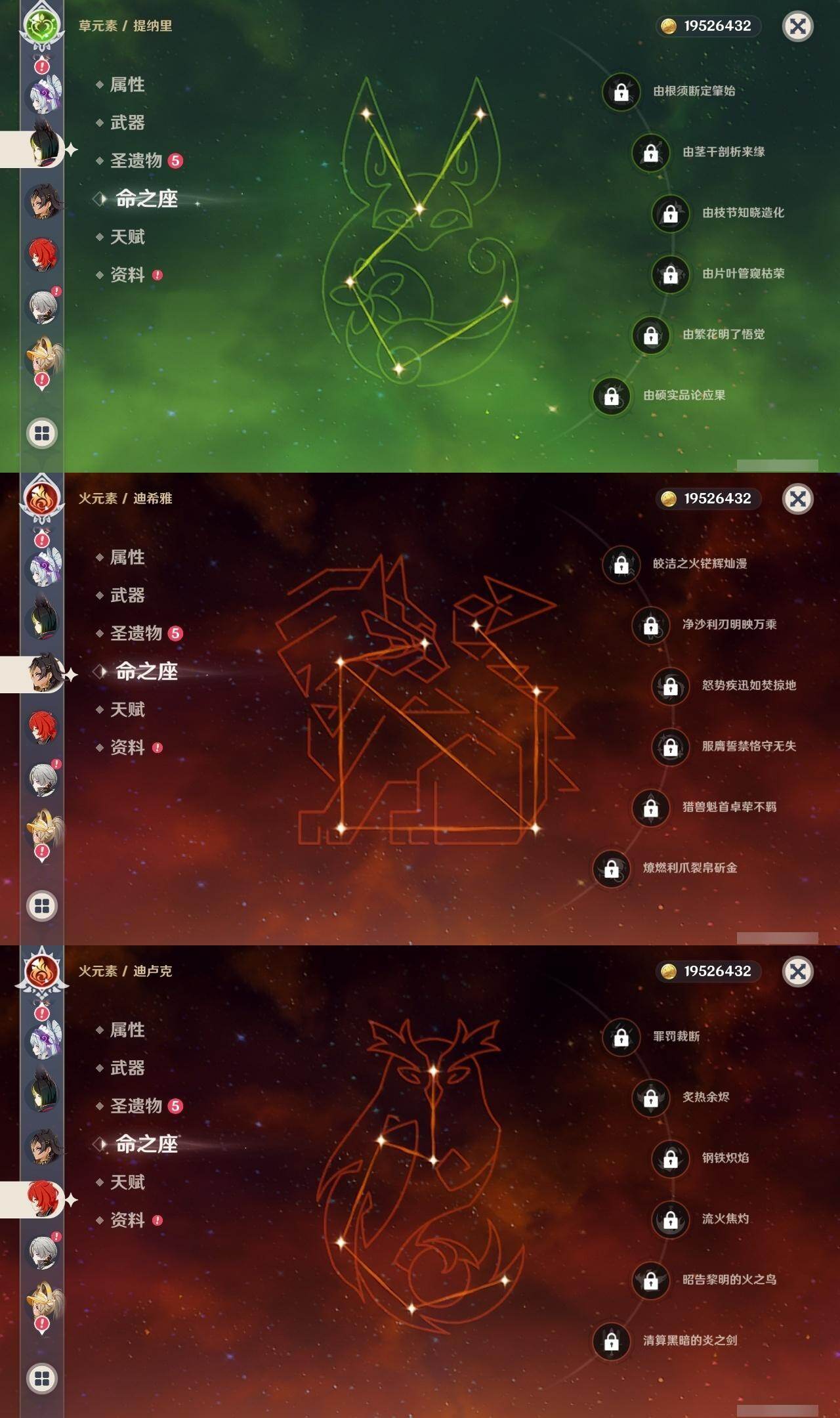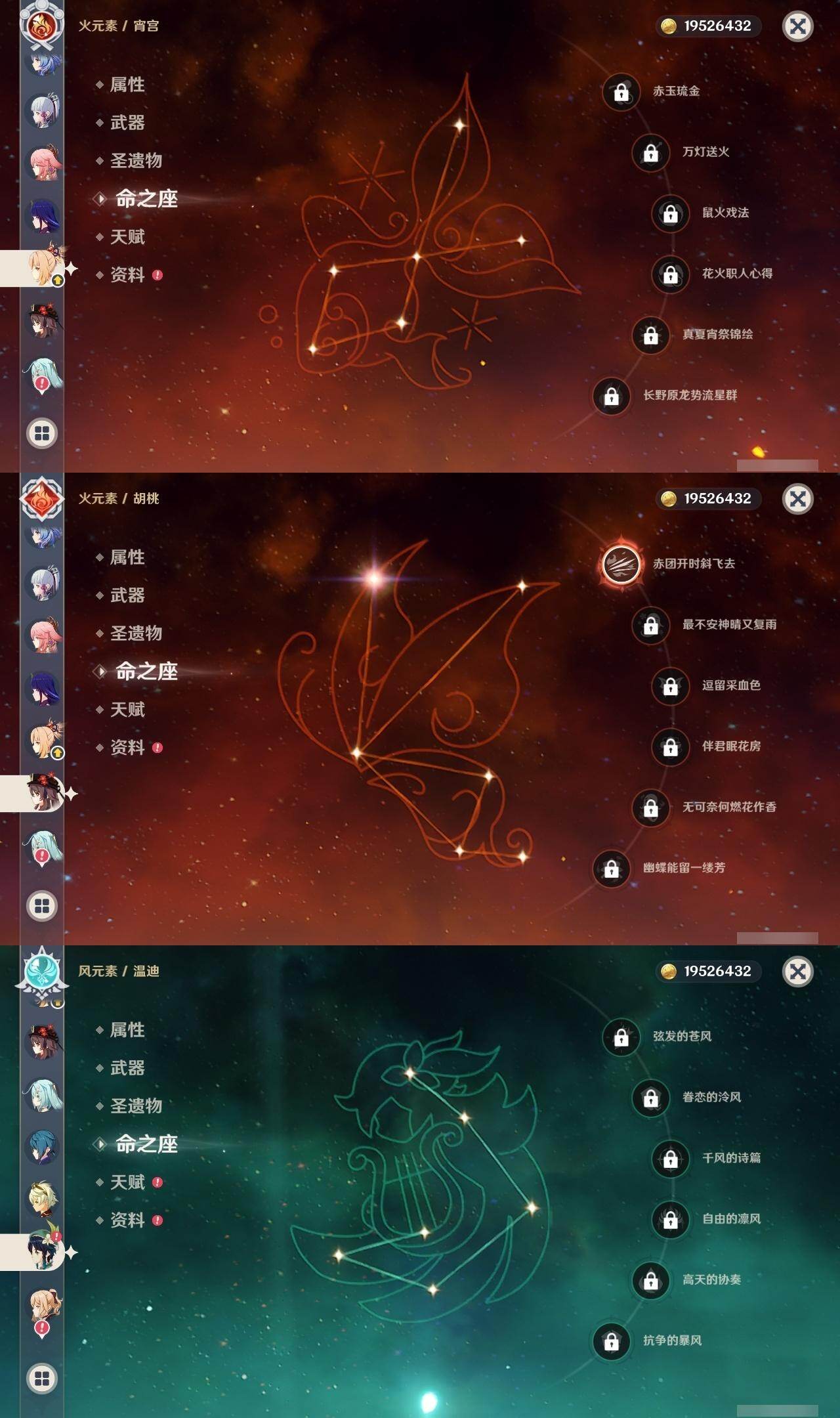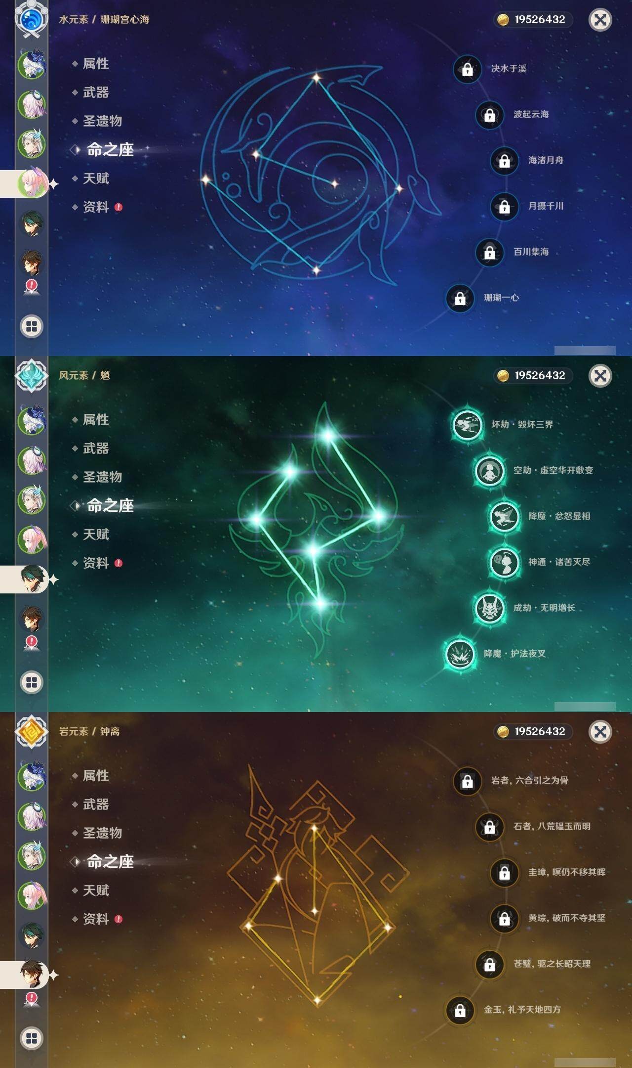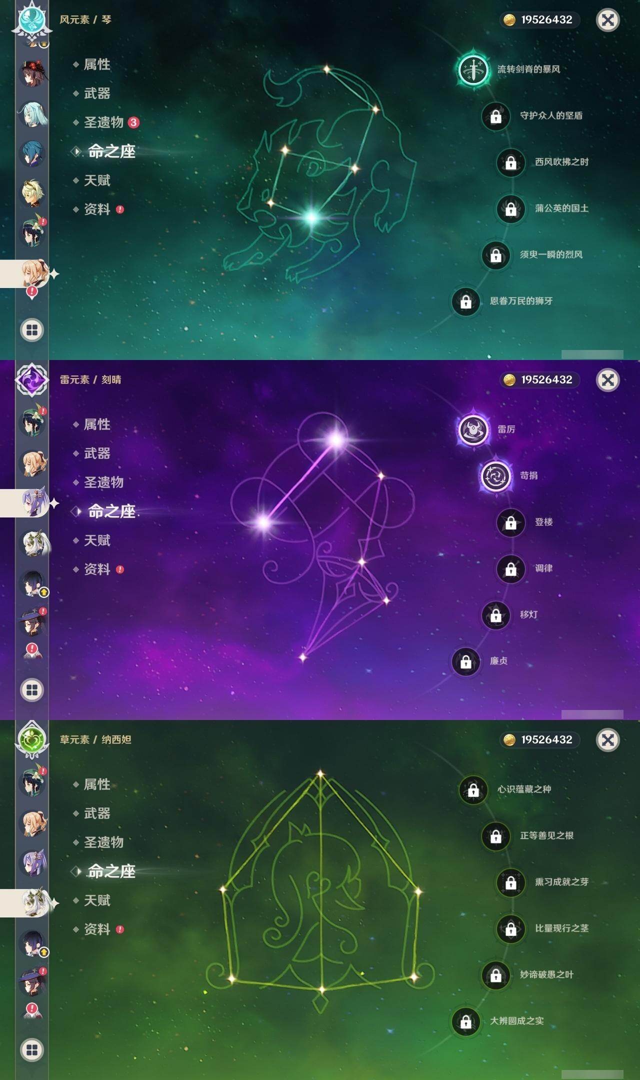 0命娜维娅,2命芙宁娜,0命那维莱特,0命迪希雅,1命流浪者,0命纳西妲,0命提纳里,1命夜兰,0命八重神子,0命优菈,0命雷电将军,0命枫原万叶,0命神里绫华,0命钟离,1命胡桃,0命甘雨,满命魈,0命宵宫,0命温迪,0命珊瑚宫心海,2命刻晴,4命七七,1命琴,5命莫娜,0命迪卢克,0命茜特菈莉,1命梦见月瑞希,精1白雨心弦,精1静水流涌之辉,精1千夜浮梦,精1若水,精1不灭月华,精1薙草之稻光,精1飞雷之弦振,精1护摩之杖,精1天空之脊,精1天空之翼,精1阿莫斯之弓,精1风鹰剑,精1狼的末路