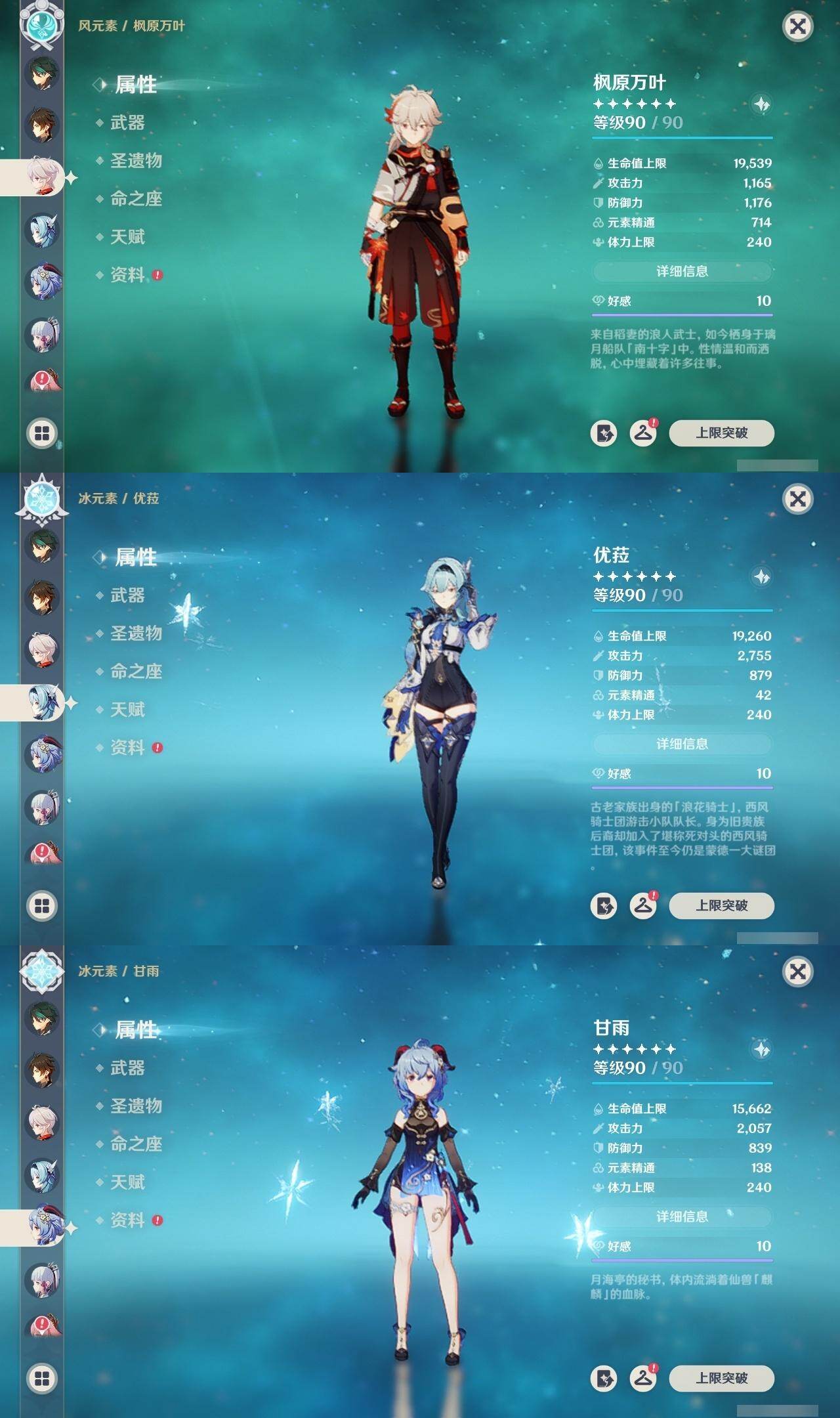 珊瑚宫心海,魈,钟离,枫原万叶,优菈,甘雨,神里凌华,八重神子,雷电将军,宵宫,胡桃,温迪,琴,刻晴,莫娜,七七,迪卢克