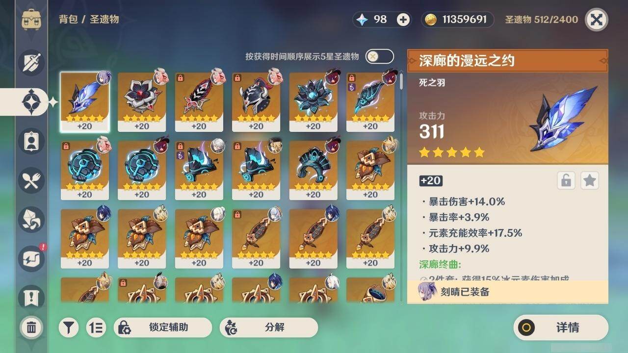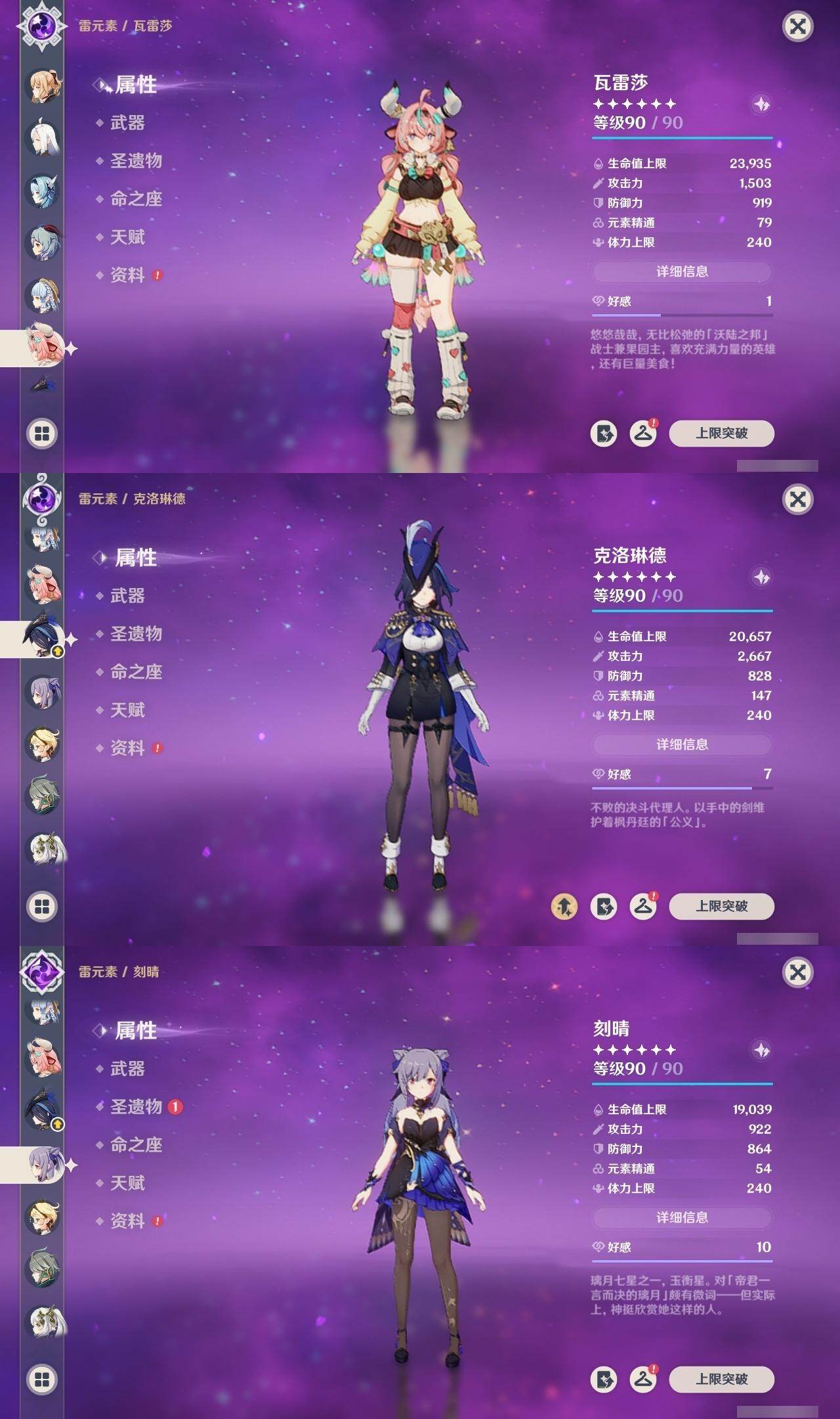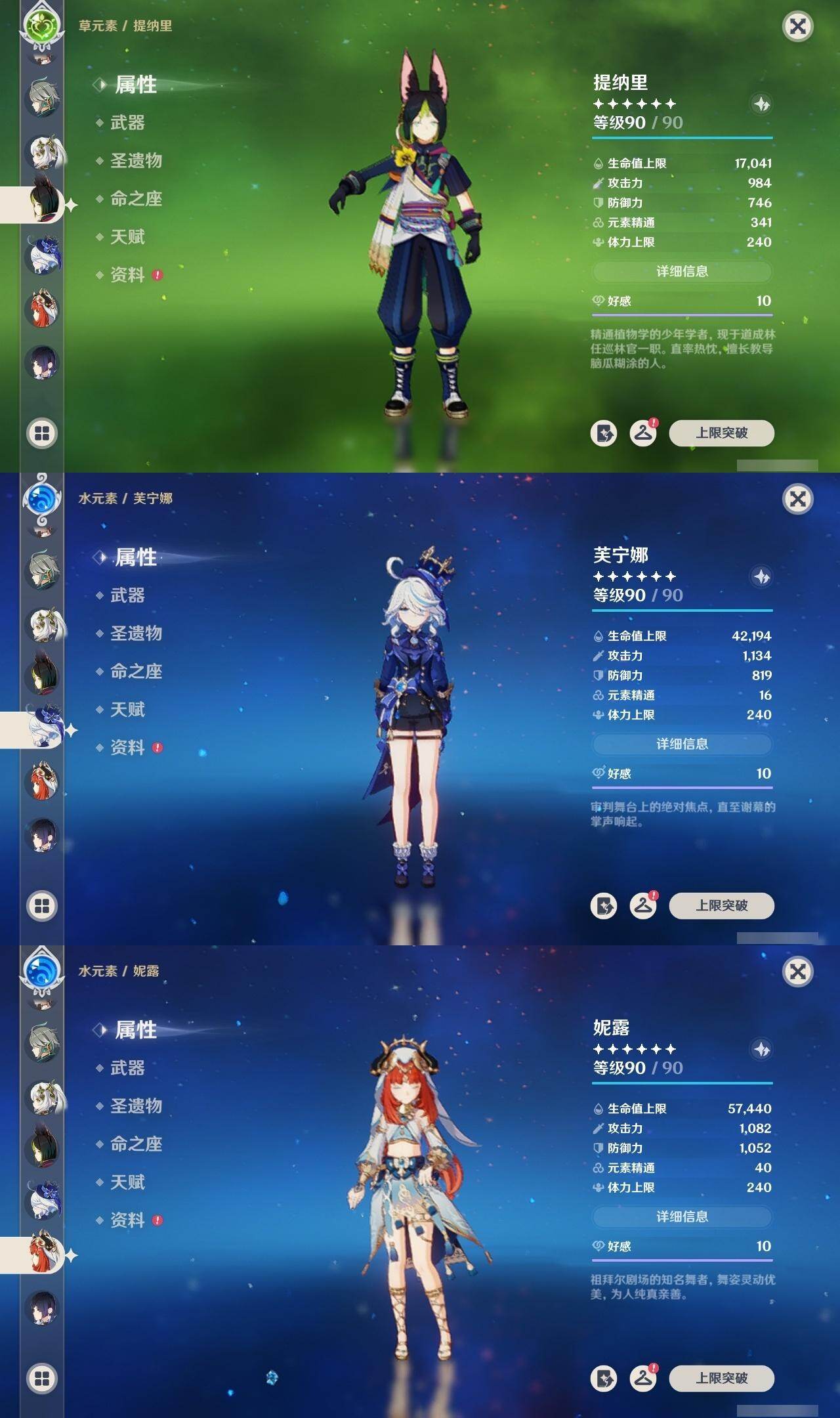 0命克洛琳德,0命阿蕾奇诺,0命千织,0命闲云,2命娜维娅,0命芙宁娜,1命那维莱特,4命迪希雅,0命艾尔海森,2命纳西妲,0命妮露,2命提纳里,1命夜兰,1命八重神子,0命申鹤,0命荒泷一斗,0命优菈,2命雷电将军,0命枫原万叶,0命神里绫华,0命钟离,1命胡桃,0命甘雨,0命魈,2命宵宫,0命温迪,0命达达利亚,0命珊瑚宫心海,3命刻晴,1命七七,2命琴,5命莫娜,5命迪卢克,1命希诺宁,0命艾梅莉埃,0命恰斯卡,0命瓦雷莎,精1裁断,精1苇海信标,精1圣显之钥,精1若水,精1薙草之稻光,精1飞雷之弦振,精1雾切之回光,精2无工之剑,精1护摩之杖,精1和璞鸢,精1天空之脊,精1天空之翼,精3阿莫斯之弓,精1斫峰之刃,精3天空之卷,精2狼的末路