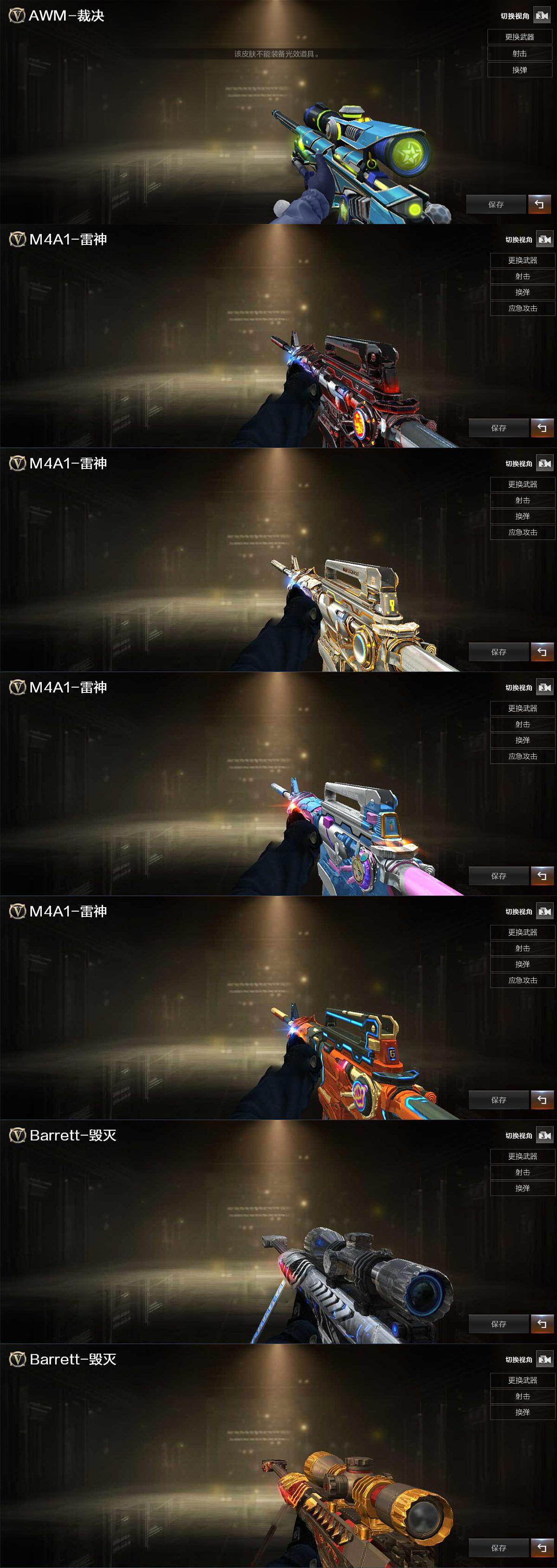 【英雄级武器】:AK47-火麒麟,M4A1-雷神,AK12-天启,Scar Light-白虎,无影-神兵利器,QBZ03-金色蔷薇,烈火-动感闪耀,Barrett-毁灭,AWM-裁决,M200-竞技荣光,沙鹰-修罗*3,沙鹰-天神,COP-雷霆,柯尔特-竞技荣光,天神-动感闪耀,擎天-竞技荣光,屠龙-动感闪耀,高爆手雷-竞技荣光*6,手雷-动感闪耀,闪光弹-竞技荣光*7,烟雾弹-竞技荣光*6