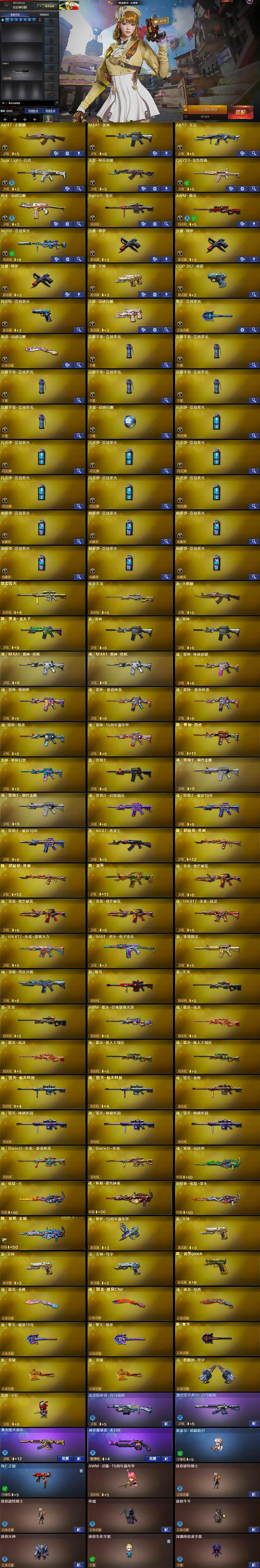 - [16706887]北方大区-80V-4王者武器数-0炫金武器数 【热门武器】:QBZ03-金色蔷薇,HK417-朱雀,白虎-电玩蓝兔,Kar98K-星神,M4A1-黑骑士*2,汤姆逊-烈龙,羊驼玩偶,沙鹰-修罗*5 【音效卡】:AK47-火麒麟音效卡,M4A1-雷神音效卡,Barrett-毁灭音效卡,Barrett-极光音效卡,麒麟刺-百战金芒-盛典舞曲音效卡,炼狱-百战金芒-庆典舞曲音效卡 【皮肤】:裁决-羽掣 皮肤,裁决-典雅胡桃 皮肤,星神-璀璨皮肤,雷神-荣耀之魄,雷神-星空,雷神-虎将,M4A1-再燃火线,雷神-神秘按键 皮肤,火麒麟-冠军之心,火麒麟-心动糖果,毁灭-英雄计划 皮肤,M4A1-千变-孔明皮肤,黑龙-能量核心,黑龙-暗月*3,黑骑士-暗月,天启-暗月,AK47-B-常胜将军-曹操,AK47-B-常胜将军-刘备,修罗-星空,屠龙-荣耀之锋,轻型军用手斧-再燃火线 【角色】:炫,迷迭香,玄豹,战地猎狐,乔伊教练,暗夜-X,电竞少女,芳心审判者,风暴女,虎妞,嘉年华灵狐,0号玩家,灵狐者-X,龙儿,龙儿-小淘气,麻雀,曼陀罗-X,潘多拉-X,斯沃特-X,甜心偶像,铁骑荣耀,维纳斯,游珑儿,智影 【人偶武器】:王者Barrett-英勇金戈,异变清道夫-蛇影双骄,AWM-灵狐-15周年嘉年华,迷你深渊冰龙*2,迷你裂空之翼,迷你牛魔王,迷你波特博士,夺魂,迷你牛牛,迷你生化手雷,生化手雷-机甲核心,深渊终结者手雷*2,闪光弹-小乔,闪光弹-貂蝉,高爆手雷-大乔,迷你巨石泰坦-魔花研究所 【暴走生化】:超级对讲机 【挑战大师】:冰龙粉碎者-白马银枪,激光毁灭者III-白马银枪,神圣爆裂者-末日III*2 【英雄级武器】:AK47-火麒麟*3,M4A1-雷神,M4A1-黑骑士*2,AK12-天启,AK47-黑鲨,HK417-朱雀,无影-神兵利器,黑武士-锦绣游龙,SCAR Light-玄豹,QBZ03-金色蔷薇,烈火-动感闪耀,王者之心-觉醒版,黑骑士-海王,AK47-B-常胜将军,白虎-电玩蓝兔,Barrett-毁灭,Barrett-极光*2,AWM-裁决*3,Kar98K-星神,王者之光-觉醒版,炼狱-百战金芒,汤姆逊-烈龙,AA-12-雷霆,沙鹰-修罗*5,Anaconda-玄豹,天神-动感闪耀,屠龙*2,麒麟刺-堕天神,屠龙-动感闪耀,麒麟刺-百战金芒,王者之啸