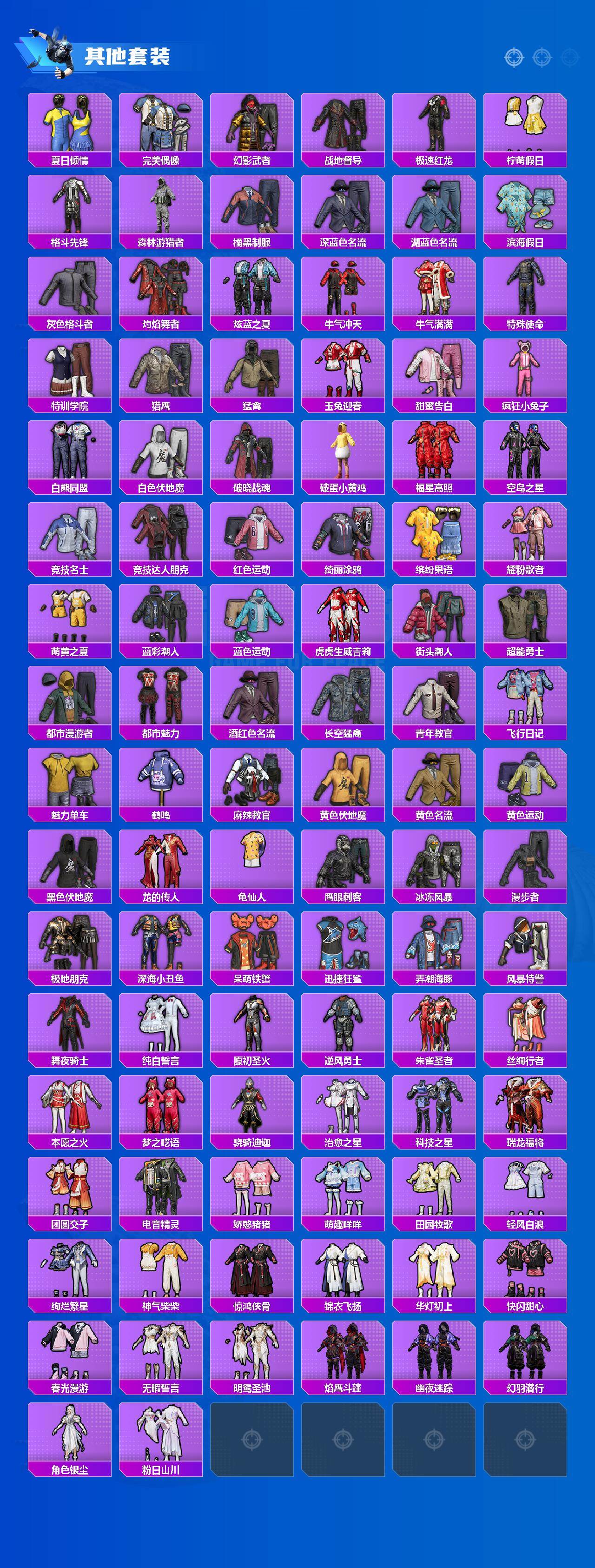 套装-深海小丑鱼,套装-星空之魅,恐龙拽拽套装,套装-碧穹智者,角色-圣堂之誓,套装-鹰眼刺客,套装-呆萌铁蟹,套装-迅捷狂鲨