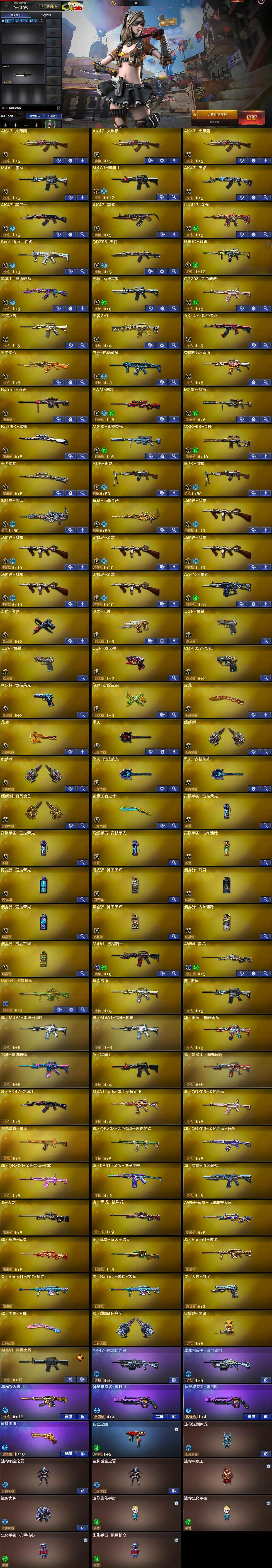 【英雄级武器】:AK47-火麒麟*3,M4A1-雷神,M4A1-黑骑士,AK47-无影,AK47-黑武士,AK47-黑鲨,HK417-朱雀,Scar Light-