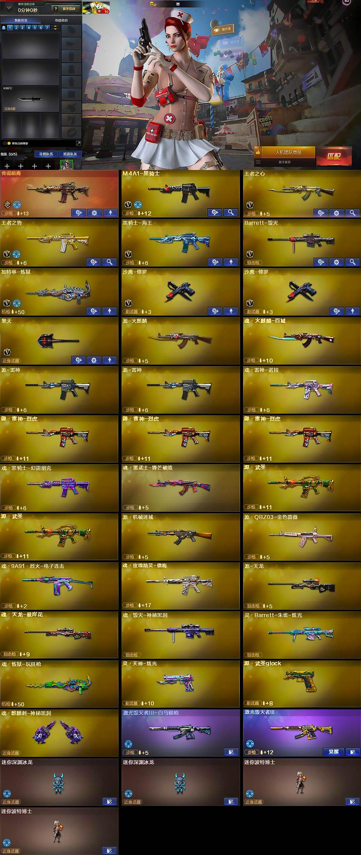 【英雄级武器】:M4A1-黑骑士,王者之心-觉醒版,王者之势-觉醒版,黑骑士-海王,Barrett-毁灭,加特林-炼狱,沙鹰-修罗*2,擎天