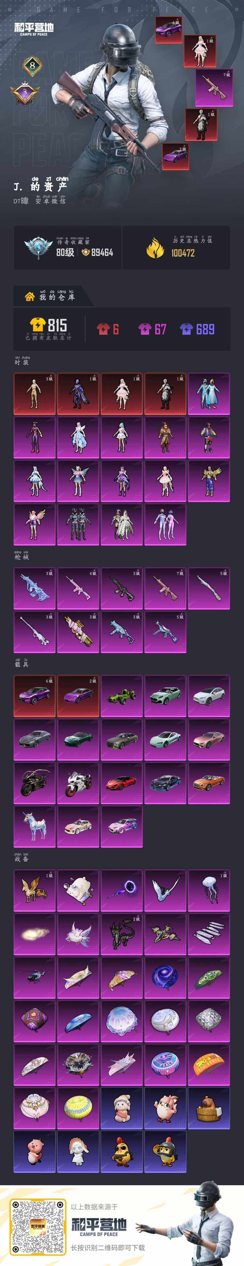 - [15150489]可二次【店主推荐捡漏号!可直接换绑】苹果 手Q-无敌战神框-1神装-16粉装-13特效枪-4载具-9粉色飞行器-82377热力值-10王牌印记-157套装-225枪皮【红色神装等级】:镜域双华-欧若拉(四级)【红色角色神装】:镜域双华-欧若拉【热门品类】:粉装-梦幻火箭,粉装-繁龙极客,套装-都市猎人,套装-派对舞王,套装-深海小丑鱼,套装-小丑鱼,套装-奇异狩猎者,套装-龟仙人,套装-粉红小猪【粉色载具】:路特斯ELETRE(冰川蓝),布加迪威龙(海洋蓝),杜卡迪 Panigale V4(杜卡迪红),星梦玉骢【粉色套装】:粉装-极限特训,粉装-宝贝奶油派,粉装-天使彩虹糖,粉装-梦幻火箭,角色-洛天依,粉装-沙场疾风,角色-白勺歌姬,角色-呆萌星弥,粉装-粉樱探戈,粉装-繁龙极客,角色-烟云彩露,角色-小蓝,角色-光极星,角色-樱桃泡泡,粉装-星穹咏叹调,角色-异瞳寒姬【粉色枪皮等级】:AKM-甜心宝贝(五级),AKM-幽焰骑士(三级),SCAR-L-锦绣绵绵(五级),M416-暖熊萌萌(六级),M416-电玩时刻(五级),M416-墨龙九天(一级),M762-电糖天使(四级),UMP45-量子极限(五级),AKS-74U-星穹咏叹调(四级),P90-沙丘之主(三级),Kar98K-巳巳如意(五级),M24-镜域双华(三级),DP-28-豹影疾电(五级)【粉色枪皮】:AKM-甜心宝贝,AKM-幽焰骑士,SCAR-L-锦绣绵绵,M416-暖熊萌萌,M416-电玩时刻,M416-墨龙九天,M762-电糖天使,UMP45-量子极限,AKS-74U-星穹咏叹调,P90-沙丘之主,Kar98K-巳巳如意,M24-镜域双华,DP-28-豹影疾电【粉色飞行器】:星夜魔法师飞行翼,沙丘之主天马,繁龙极客飞行器,镜域双华-灵镜之阶,龙翔九天飞行器,幻海精灵飞行器,灵珠游龙飞行器