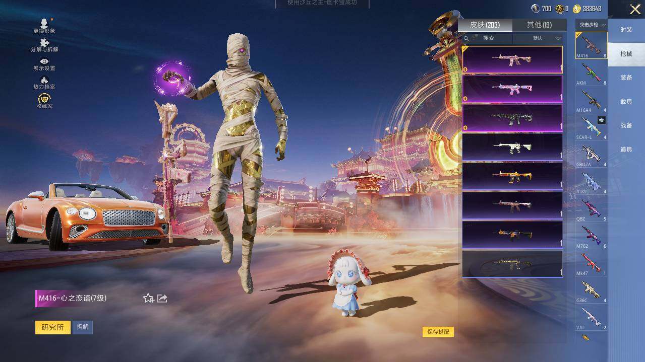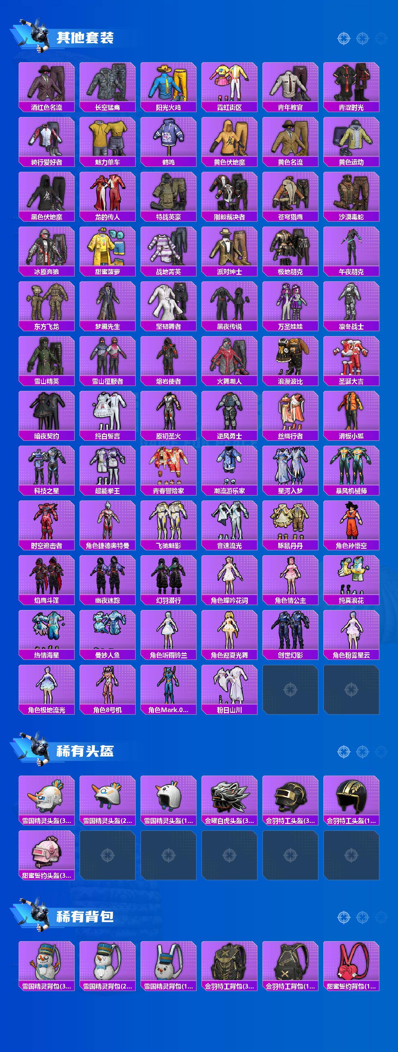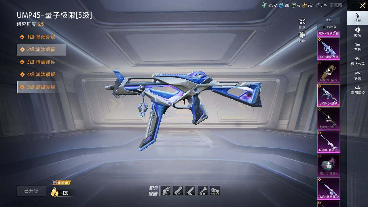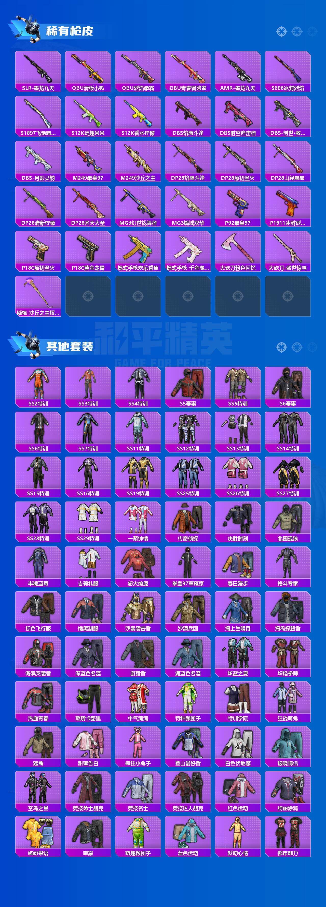 M416-心之恋语,M416-电玩时刻,M416-墨龙九天,AUG-星梦奇缘,UMP45-雪国精灵,UMP45-量子极限,P90-沙丘之主,Kar98K-巳巳如意,M200-梦海之灵