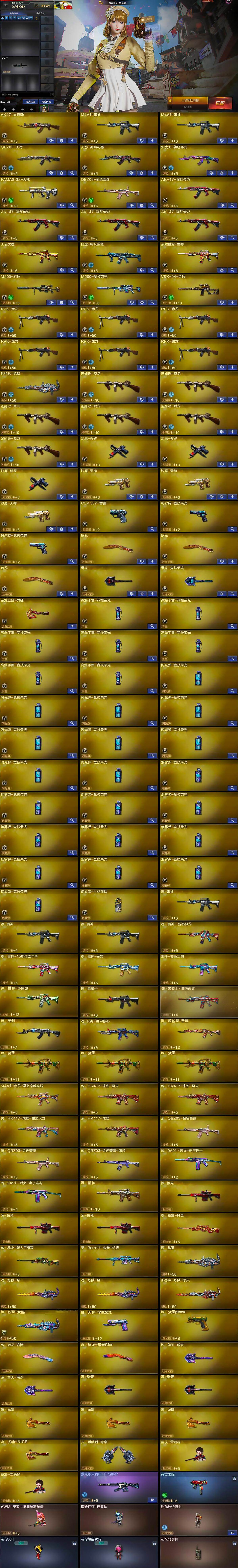 【英雄级武器】:AK47-火麒麟,M4A1-雷神*2,QBZ03-天罚,无影-神兵利器,黑武士-锦绣游龙,FAMAS G2-天戎,QBZ03-金色蔷薇,AK-47-猩红传说*4,王者火魄-觉醒版,白虎-电玩蓝兔,荣耀世冠-雷神,M200-幻神,M200-竞技荣光,VSK-94-金蚀,RPK-盘龙*6,加特林-炼狱,汤姆逊-烈龙*6,沙鹰-修罗*3,沙鹰-天神*3,COP-雷霆,柯尔特-竞技荣光*2,屠龙*3,擎天,擎天-竞技荣光,荣耀世冠-龙啸,高爆手雷-竞技荣光*7,闪光弹-竞技荣光*9,烟雾弹-竞技荣光*11,烟雾弹-古蛇迷踪