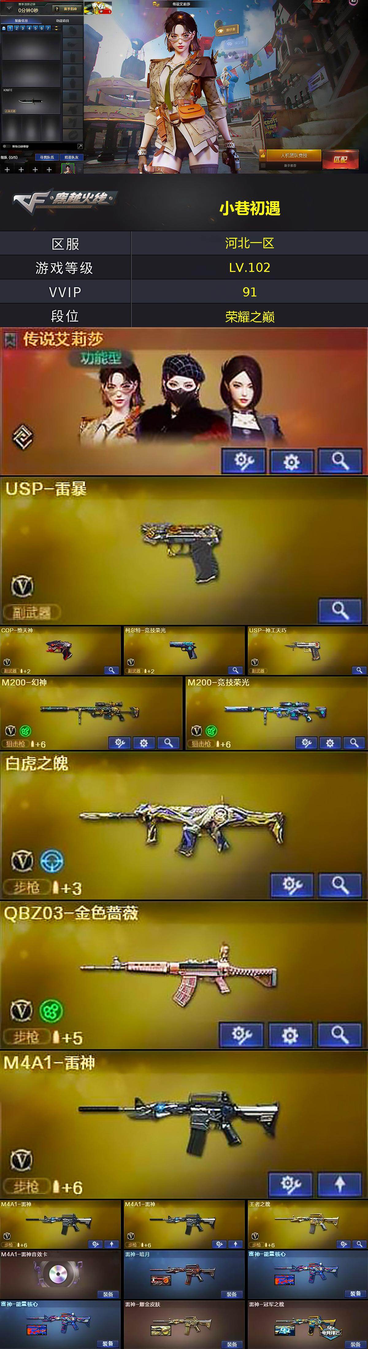 - [11994474]可二次 可修改实名 排位资格:有 2王者武器 1炫金武器 94V武器 4V角色 12皮肤 可排位 新锐 武器:AWM-裁决,9A91-烈火,AK12-天启,barrett-金色蔷薇,QBZ03-金色蔷薇,AK47-机械迷城,黑武士-锦绣游龙,沙鹰-幻兽,闪光弹-幻兽,无影-神兵利器,龙啸,闪光弹-雷霆,M4A1-雷霆,M4A1-黑龙,Barrett-毁灭,死亡之眼,Glock18-武圣,雷霆之契,M4A1-黑骑士,烟雾弹-幻兽,QBZ95-幻兽,AWM-天龙,M4A1-玫瑰精灵,雷霆之锋,加特林-炼狱,超新星-悦享,汤姆逊-烈龙,Barrett-极光,擎天,高爆手雷-幻兽,女皇利刃-幻兽,炫金黑龙,高爆手雷-雷霆,破空枪刃,烟雾弹-雷霆,AK47-黑武士,M4A1-千变,屠龙,M4A1-雷神,RPK-盘龙,M4A1-死神,AK47-火麒麟,M4A1-武圣,沙鹰-天神,王者之怒-觉醒版,王者之魂,沙鹰-修罗,麒麟刺