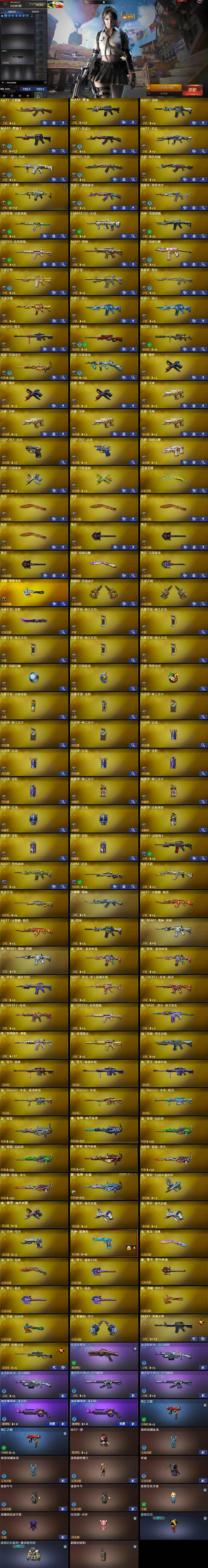【热门武器】:G36C-幻影,QBZ03-金色蔷薇,Scar Light-白虎,M200-幻神,金色蔷薇-古蛇迷踪,修罗-古蛇迷踪,死亡之眼*2,QBZ03-街机,M4A1-黑骑士,羊驼玩偶,COP 357-幻灵,沙鹰-修罗*3