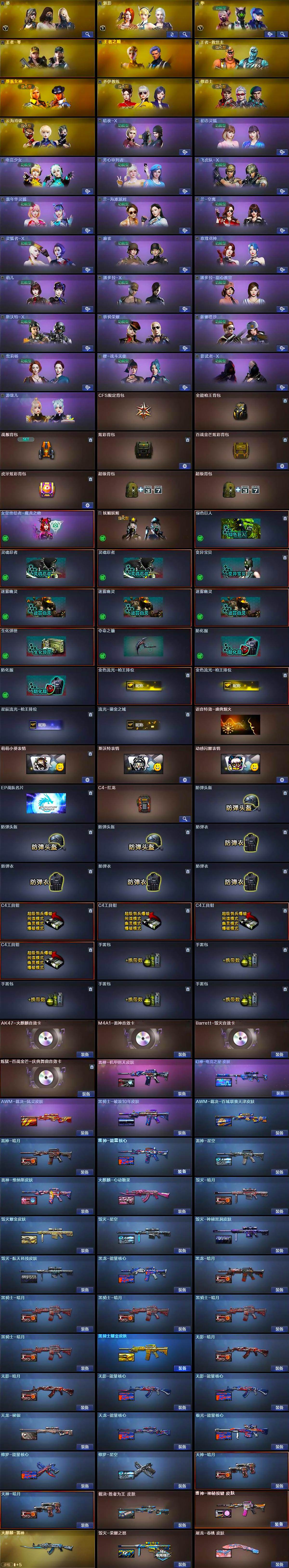 - [14731880]四川一区-18V-2王者-0炫金 【热门武器】:M200-幻神,白虎-电玩蓝兔,沙鹰-修罗*3 【皮肤】:幻神-荣耀世冠EP 皮肤,雷神-宇航兔皮肤,毁灭-暗月,毁灭-英雄计划 皮肤 【角色】:王者涂鸦,乔伊教练,修道士,云海玲珑,初恋灵狐,芳心审判者,嘉年华灵狐,娟娟,流浪蔷薇,龙儿,潘多拉-X,潘多拉-甜心教官,蜀雪,兔囡囡 【人偶武器】:迷你救赎猎手,AWM-灵狐-15周年嘉年华*2,迷你生化手雷,生化手雷-机甲核心,迷你超能女侍,灵狐娃娃手雷 【挑战大师】:激光毁灭者III-白马银枪,神圣爆裂者-末日III 【英雄级武器】:M4A1-黑龙,M4A1-雷神,AK47-黑武士,AK-47-猩红传说,白虎-电玩蓝兔,Barrett-毁灭,M200-幻神,王者之霆-觉醒版,沙鹰-修罗*3,屠龙,M4A1-苍鸣雷神,Barrett-碧霄极光 【道具】:虎牙炫彩背包,女皇终结者-魔龙之吻,绿色巨人,灵魂忍者,迷雾幽灵,夺命之镰,防化服*3,金色流光-枪王排位,枪王排位28赛季金色流光,电玩兔兔表情,EP战队名片,防弹头盔*5,防弹衣*5,C4工具钳*5,手雷包*5 【特殊枪械】: