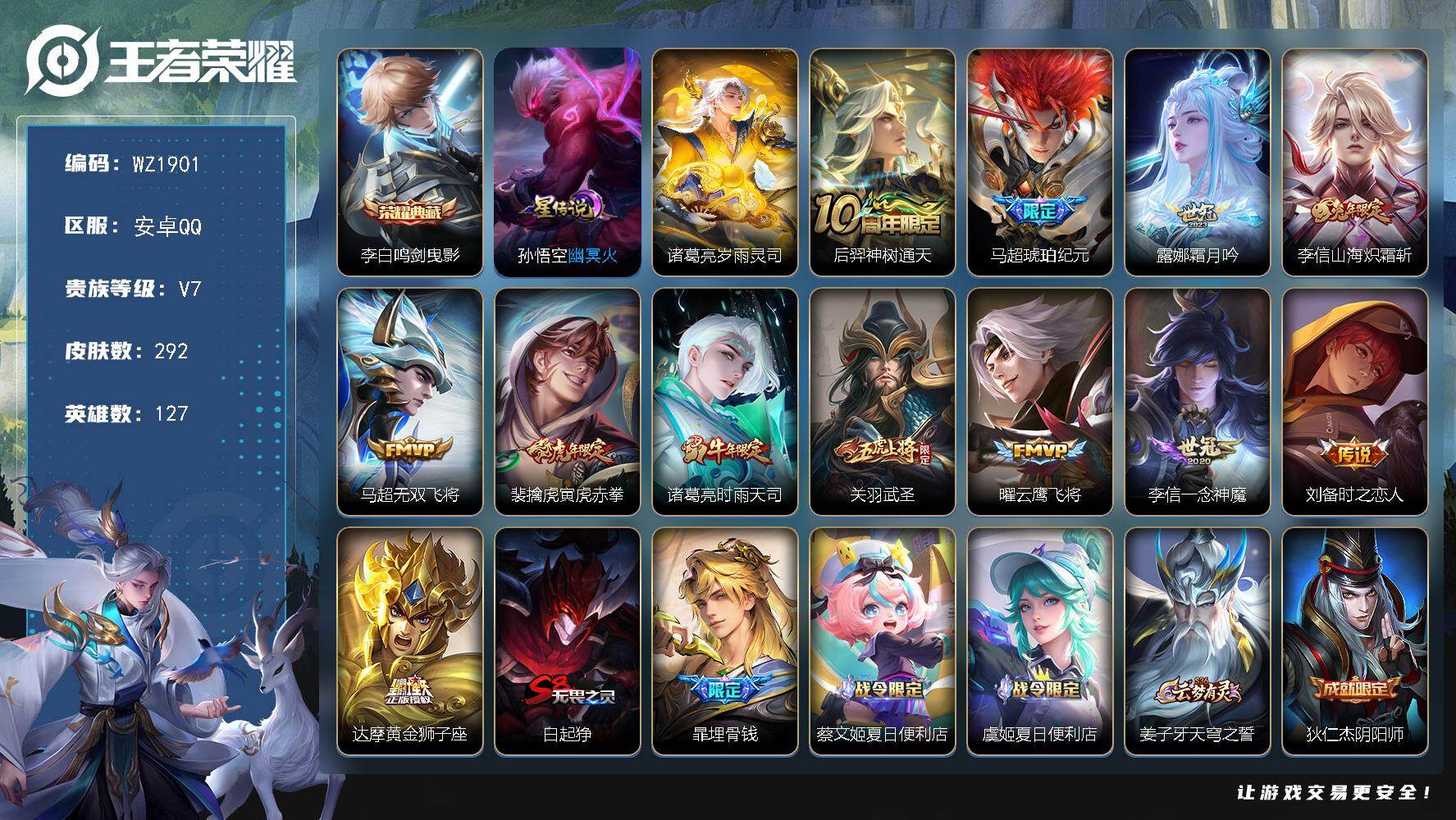 [17017343]安卓Q-292皮肤-1典藏皮肤-12传说-85史诗