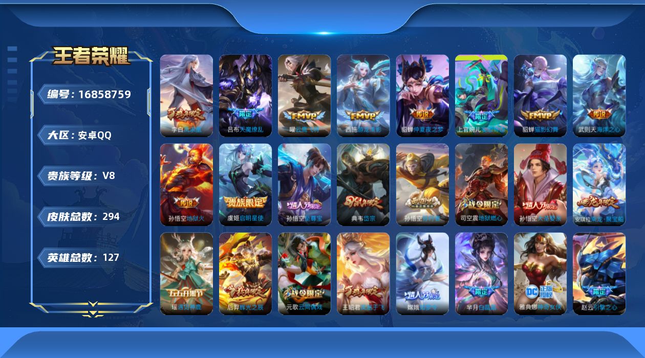 [16858759]安卓Q-V8-294皮肤-1典藏英雄-10传说-90史诗