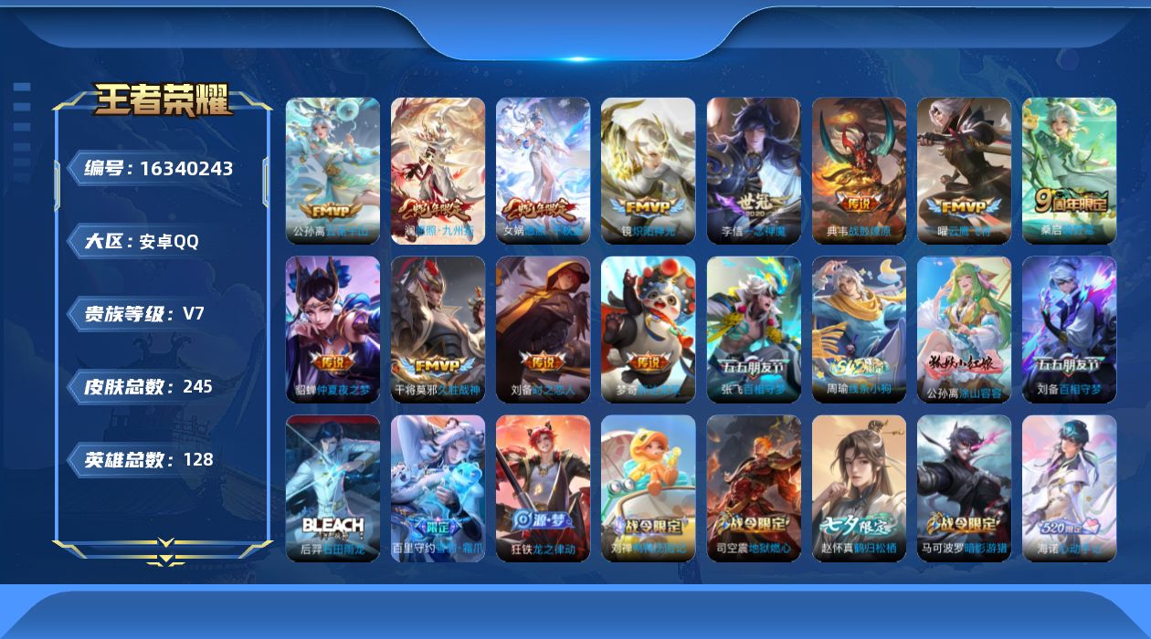 [16340243]安卓Q-V7-128英雄-245皮肤-13传说-64史诗