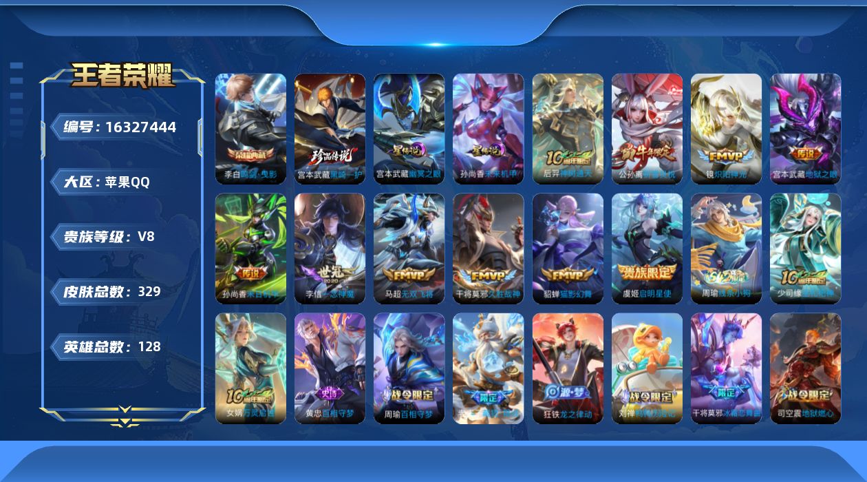 [16327444]苹果Q-329皮肤-1典藏皮肤-1珍品传说-10传说-89史诗
