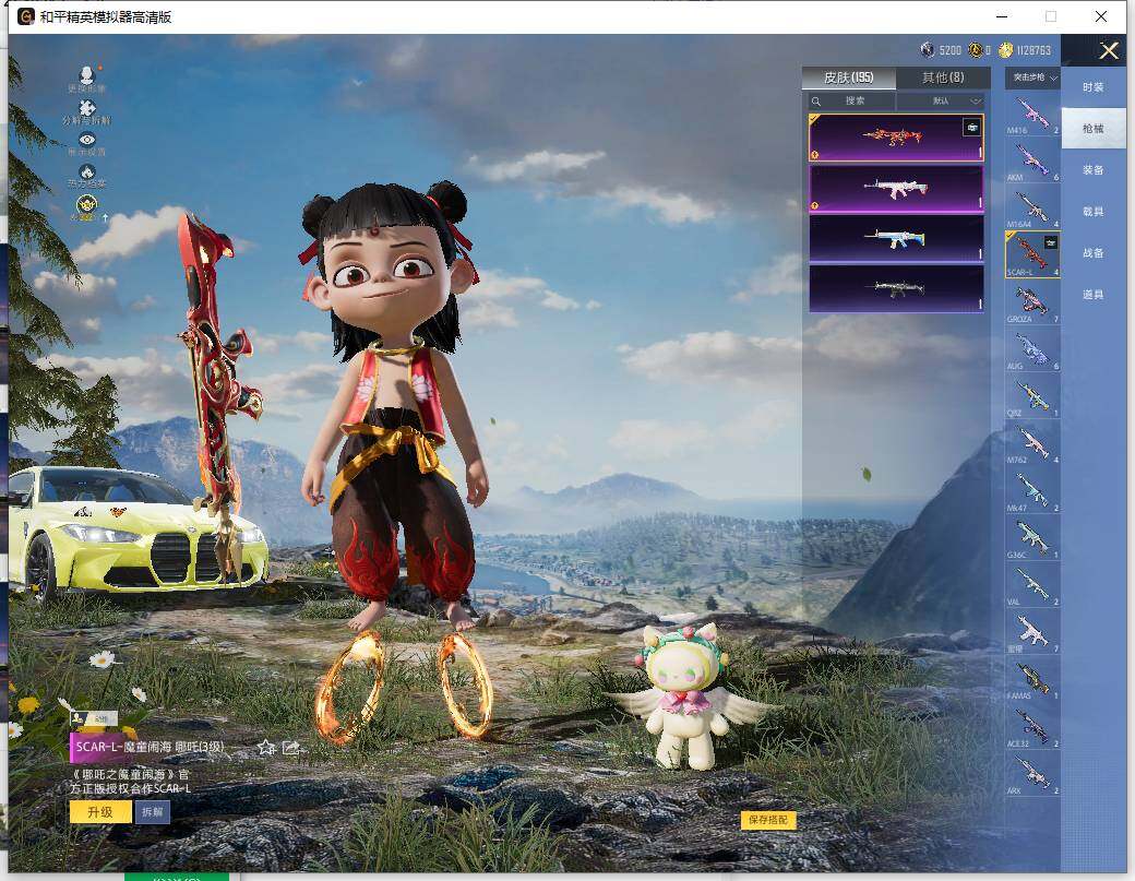 AKM-绿萝繁花,AKM-魔法神域,SCAR-L-锦绣绵绵,M416-电玩时刻,GROZA-镜光银凌,AUG-星梦奇缘,AUG-暖羊咩咩,UMP45-量子极限,Kar98K-巳巳如意,烟雾弹-猫咪绅士