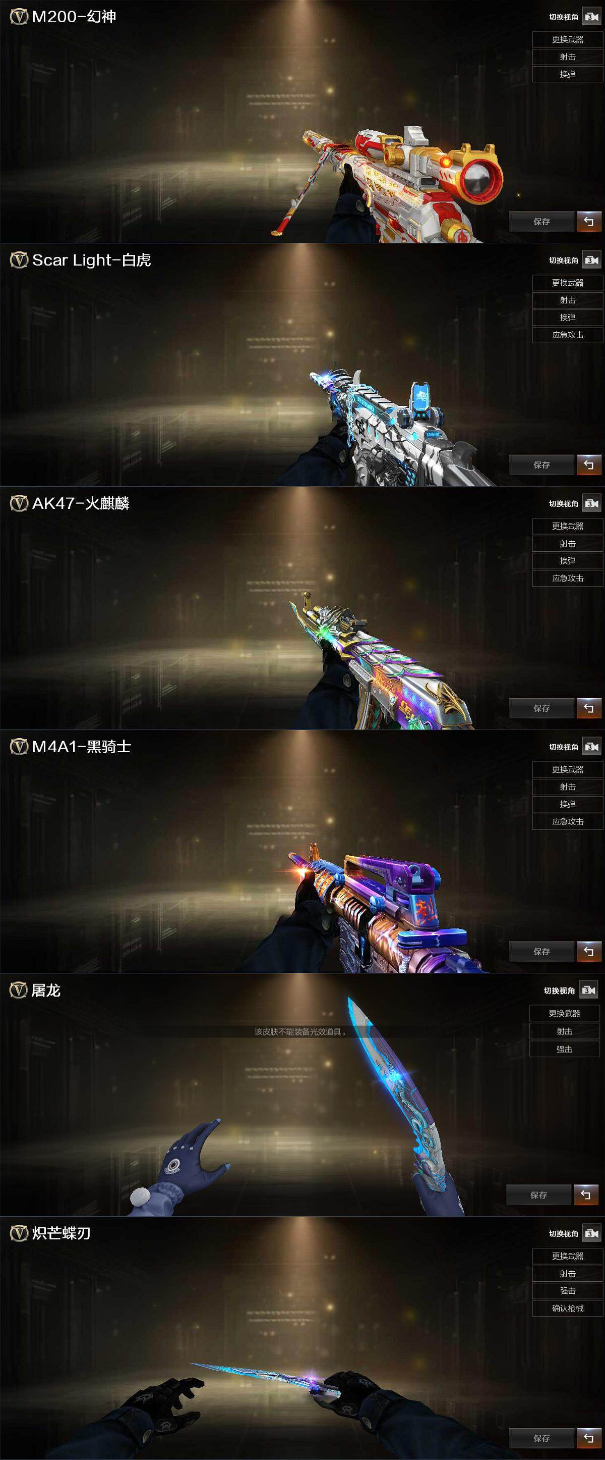 【皮肤】:幻神-AG-CFPL S24冠军 皮肤,白虎-白鲨-CFPLS23冠军,火麒麟-巅峰荣耀,黑骑士-破浪10年皮肤,屠龙-破浪逐光 皮肤,炽芒蝶刃-破浪逐光 皮肤