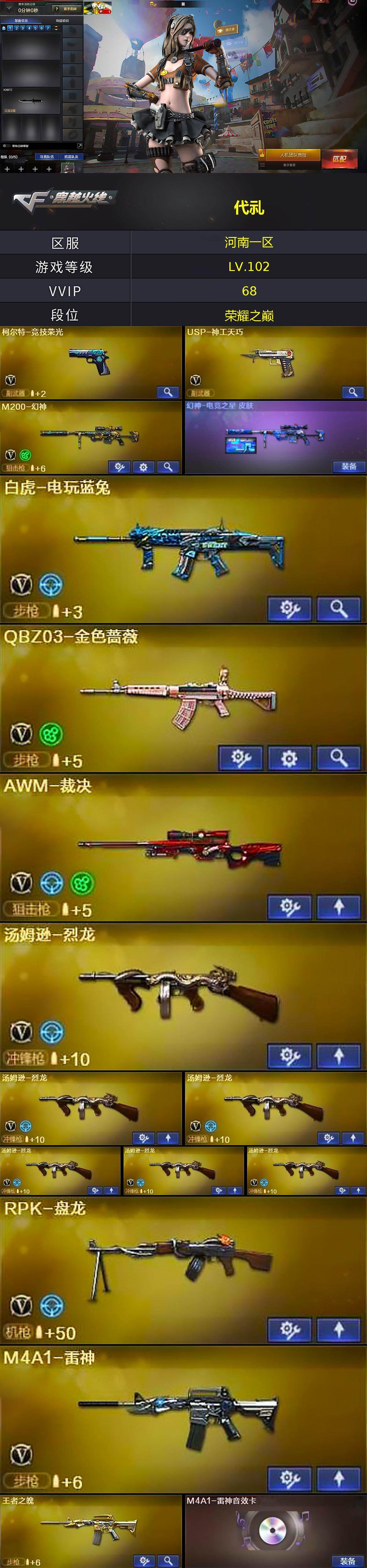 [17044259]河南一区-68V-2王者武器数-2炫金武器数