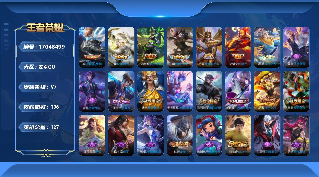 [17048499]安卓Q-196皮肤-1典藏皮肤-5传说-50史诗