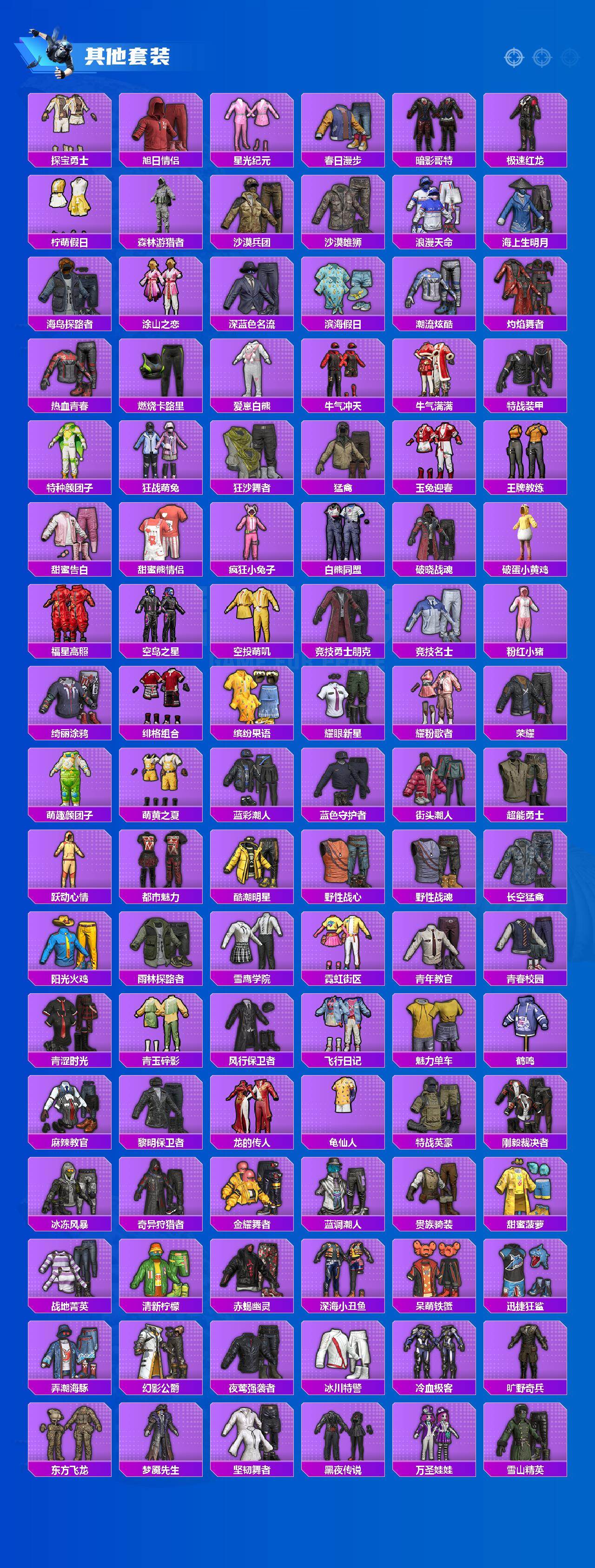 套装-梦幻火箭,套装-缤纷油彩,套装-赤蝎幽灵,套装-都市猎人,套装-深海小丑鱼,套装-奇异狩猎者,套装-潮萌小黄鸭,套装-浪漫波比,套装-深海曼妙,套装-未来战士,套装-放客神游,套装-甜蜜誓约,套装-星之彼岸,套装-蓝莓炮弹,套装-星夜魔法师,套装-旋转彩虹,套装-第五大道,角色-小可学妹,角色-茉莉星,角色-萨利娅,奇迹天团套装,套装-爱崽白熊,套装-呆萌铁蟹,套装-迅捷狂鲨,套装-东方飞龙,套装-梦魇先生,套装-万圣娃娃,套装-萌神柯基,套装-神秘黑猫