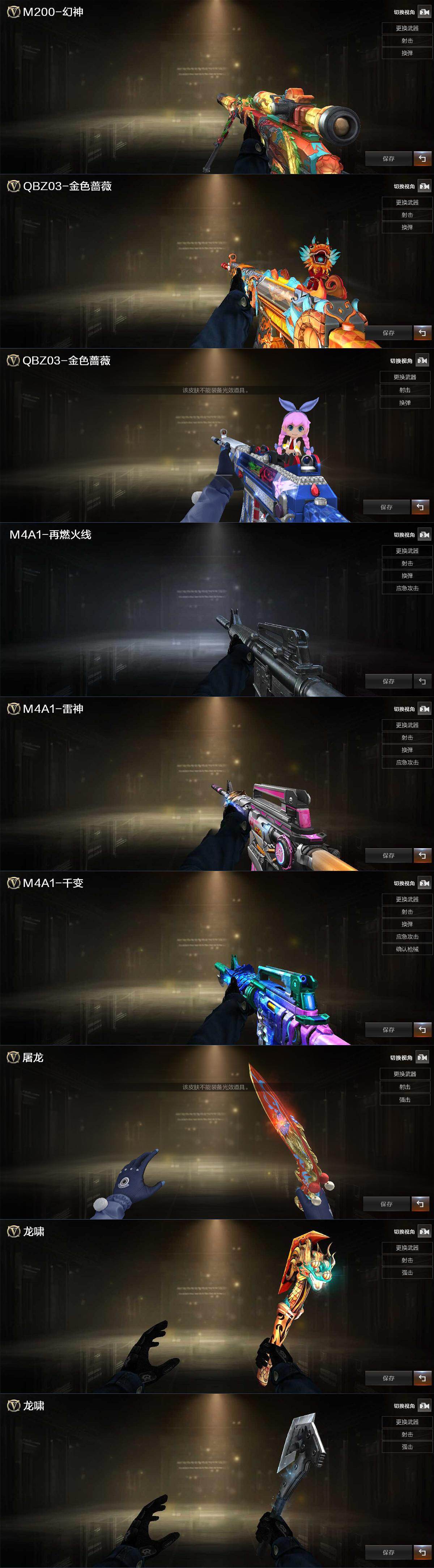 【皮肤】:幻神-纸灯龙皮肤,金色蔷薇-纸灯龙皮肤,金色蔷薇-电竞之星 皮肤,M4A1-再燃火线,雷神-神秘按键 皮肤,M4A1-千变-孔明皮肤,屠龙-惊鸿 皮肤,龙啸-纸灯龙皮肤,轻型军用手斧-再燃火线