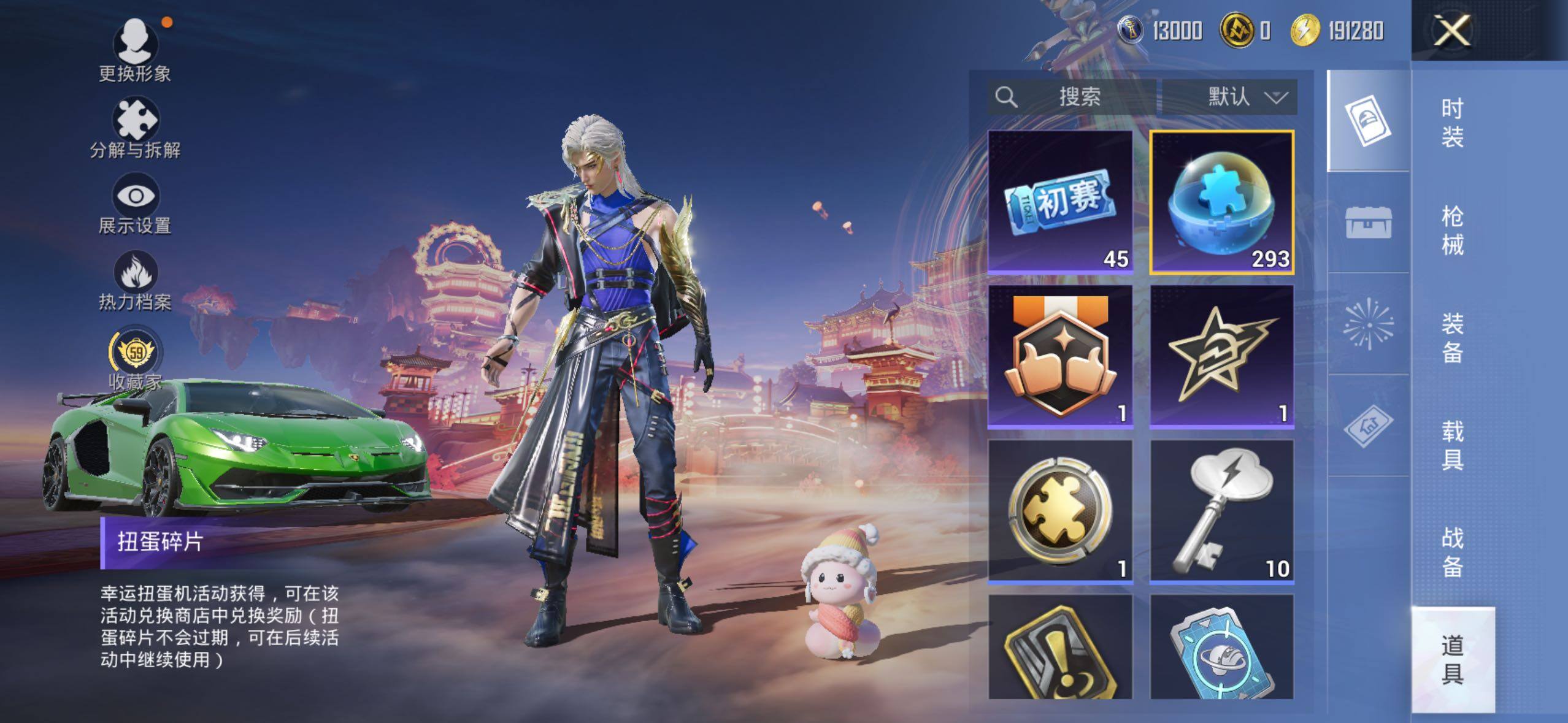 - PX_2100998-??/枪械11/装备246/载具2/战备146/王牌印记9/热力值62847/五级SCAR-L-锦绣绵绵/五级M416-电玩时刻/五级GROZA-镜光银凌/五级AUG-暖羊咩咩/五级M762-青锋波束/四级蜜獾-荧海星豚/五级UMP45-量子极限/五级Kar98K-巳巳如意/七级DP-28-千金淑猫/七级MG3-洛神天依/七级PKM-江南烟雨/兰博轿车灰色/双人摩托梦幻火箭/