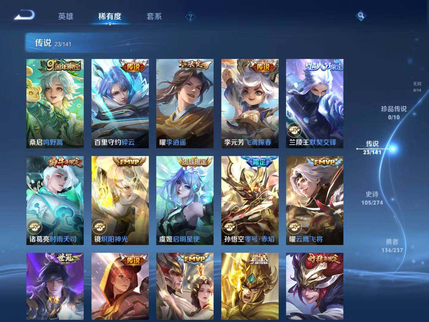 [17081394]差1000多v10,苹果Q-V9-349皮肤-4典藏皮肤-1典藏英雄-23传说-104史诗