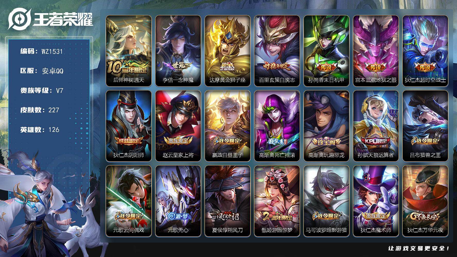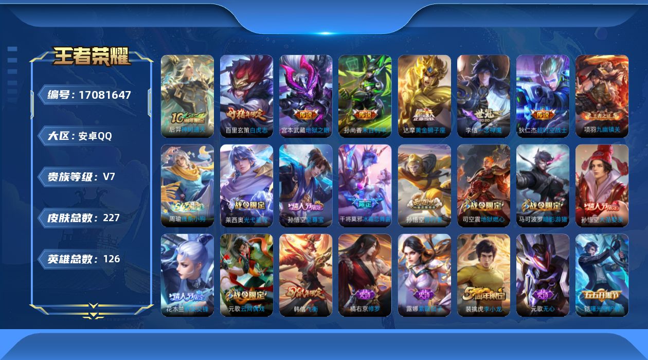 [17081647]安卓Q-V7-最强王者段位-126英雄-227皮肤-7传说-49史诗