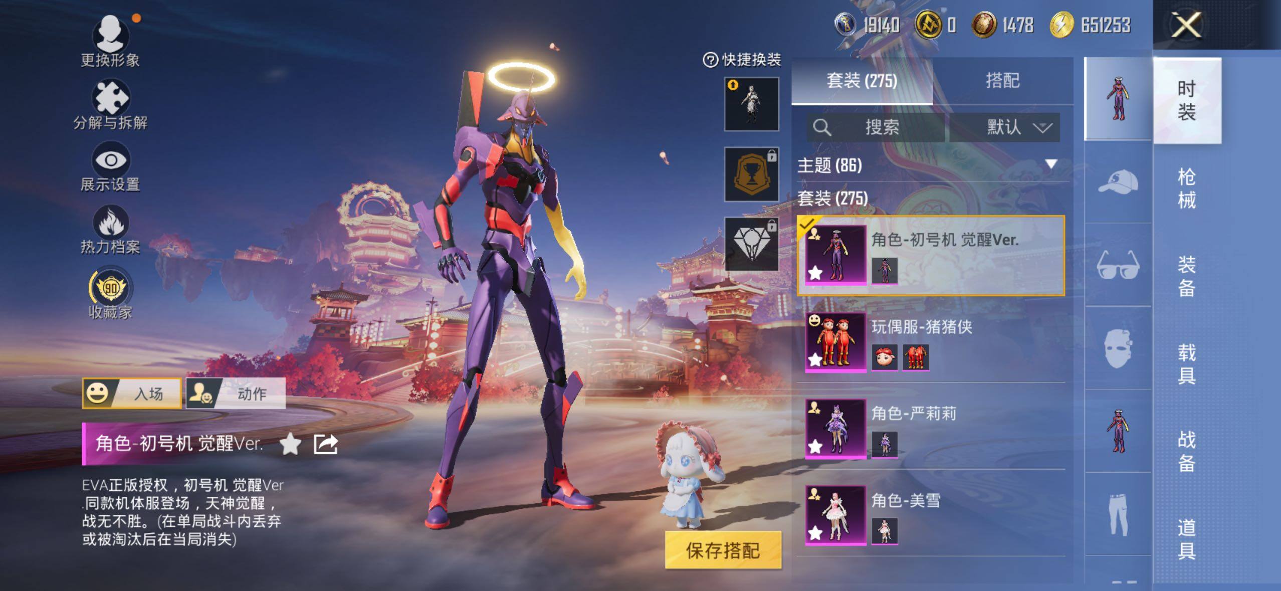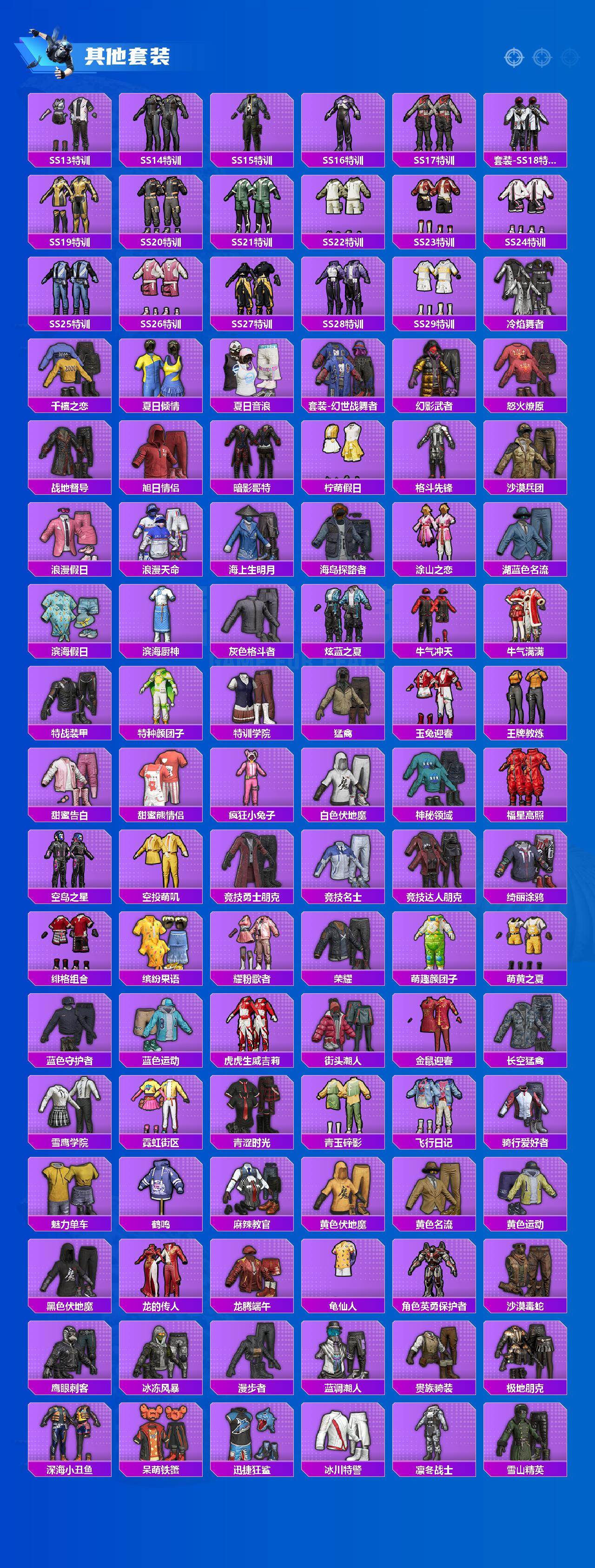 【粉色套装】:粉装-宝贝奶油派,粉装-天使彩虹糖,粉装-梦幻火箭,粉装-缤纷油彩,粉装-甜蜜誓约,粉装-花间之火,粉装-俏皮狐尾,粉装-香水柠檬,角色-零号机款机体服,粉装-薄荷物语,粉装-紫电风暴,粉装-第五大道,粉装-瑰丽时代,角色-呆萌星弥,玩偶服-猪猪侠,角色-烟云彩露,角色-严莉莉,角色-美雪,角色-初号机 觉醒Ver.,粉装-星穹咏叹调,角色-罪夜之冕