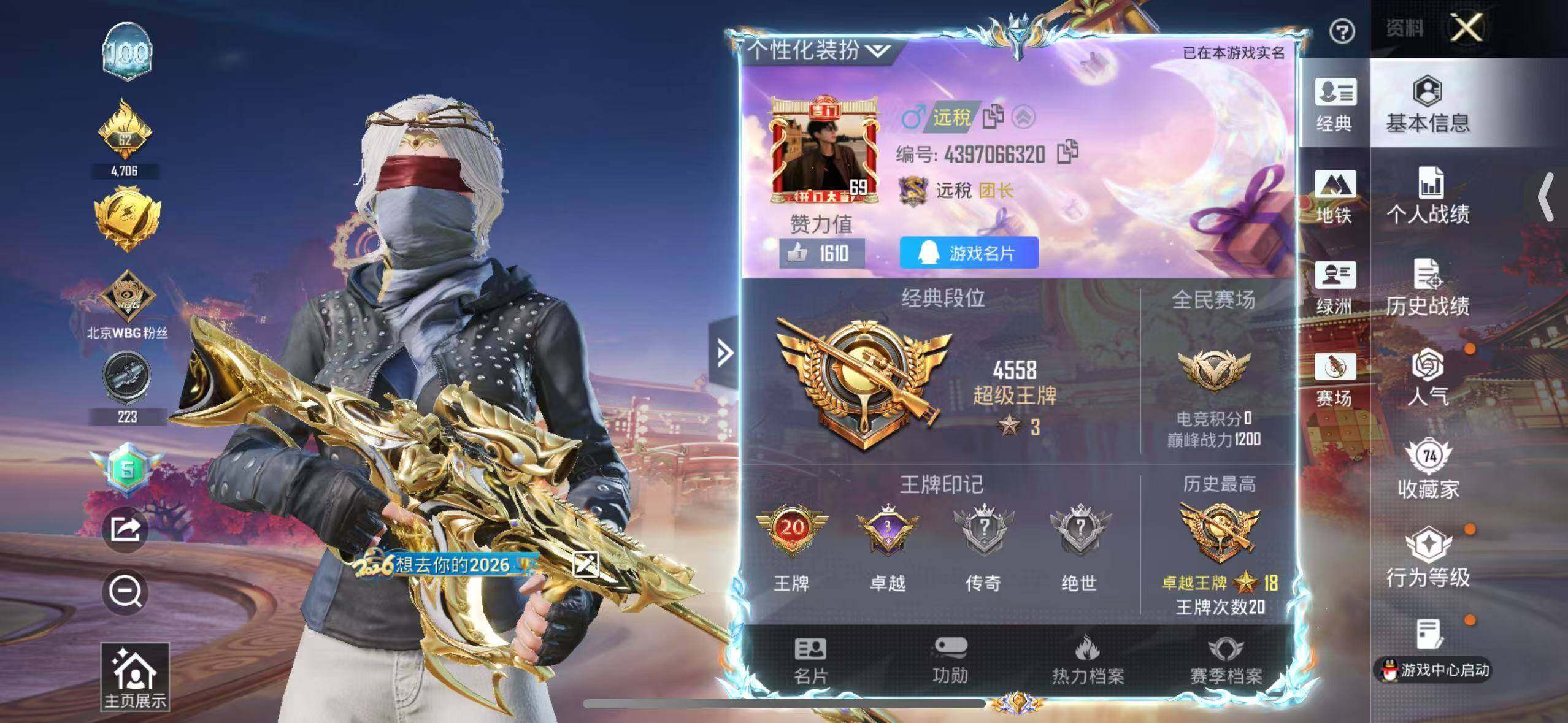 - PX_2097061- 包人脸 V7 贵族积分25901 苹果QQ/210皮肤/123英雄/0典藏/0珍品无双/0无双/0珍品传说/8传说/43史诗/7稀有英雄 【8 传说皮肤】,无双飞将 马超,炽阳神光 镜,霜月吟 露娜,淬星耀世 赵云,黄金白羊座 张良,幻光神枪 云缨,愿照·山河定 司空震,鸣野蒿 桑启, 【43 史诗皮肤】,紫霞仙子 露娜,天秀·启明 杨戬,德古拉伯爵 刘邦,心灵战警 亚瑟,