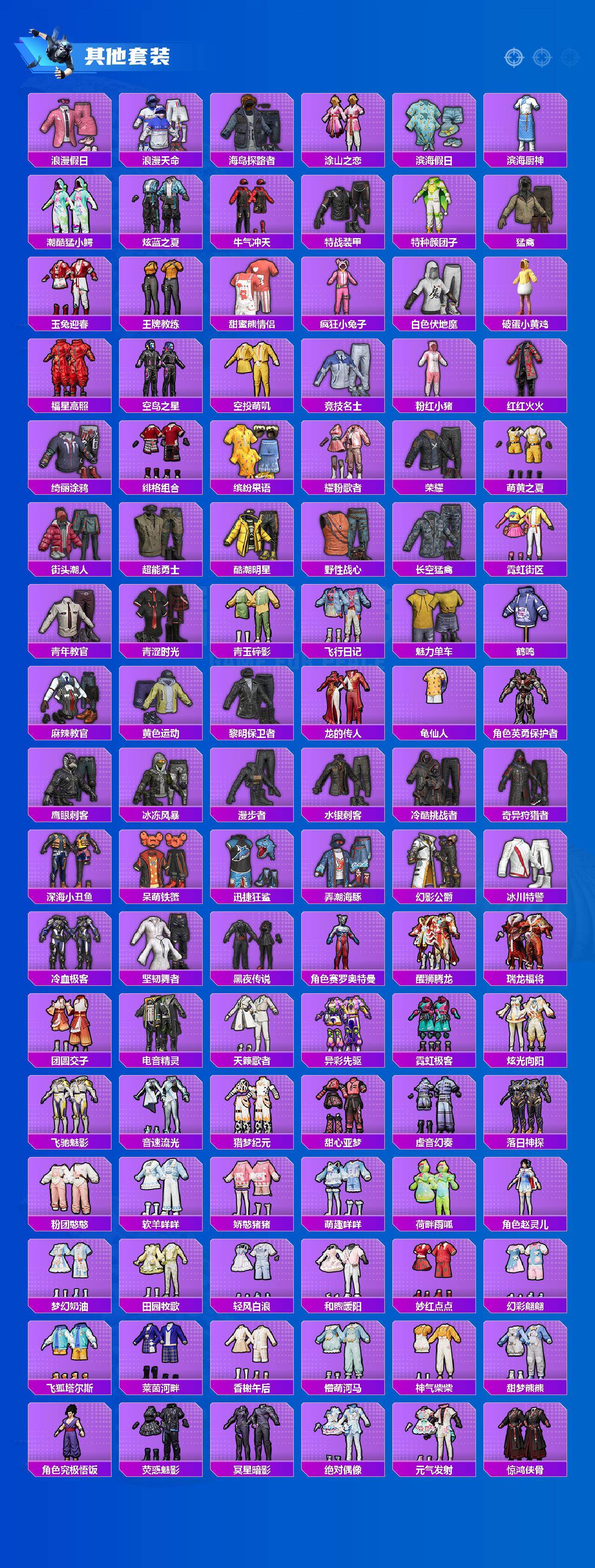 套装-梦幻火箭,套装-都市猎人,套装-深海小丑鱼,套装-奇异狩猎者,套装-快乐主宰,套装-宝贝奶油派,套装-炙焰红王,角色-洛天依,角色-复仇流浪者,套装-霞光圣骑,套装-第五大道,套装-仲夏莫吉托,套装-炫光之旅,角色-星云暗核,套装-莲影清波,套装-傲傲奶龙,套装-创世·救赎,角色-星梦奇缘,角色-千金淑猫,套装-鹰眼刺客,套装-呆萌铁蟹,套装-迅捷狂鲨