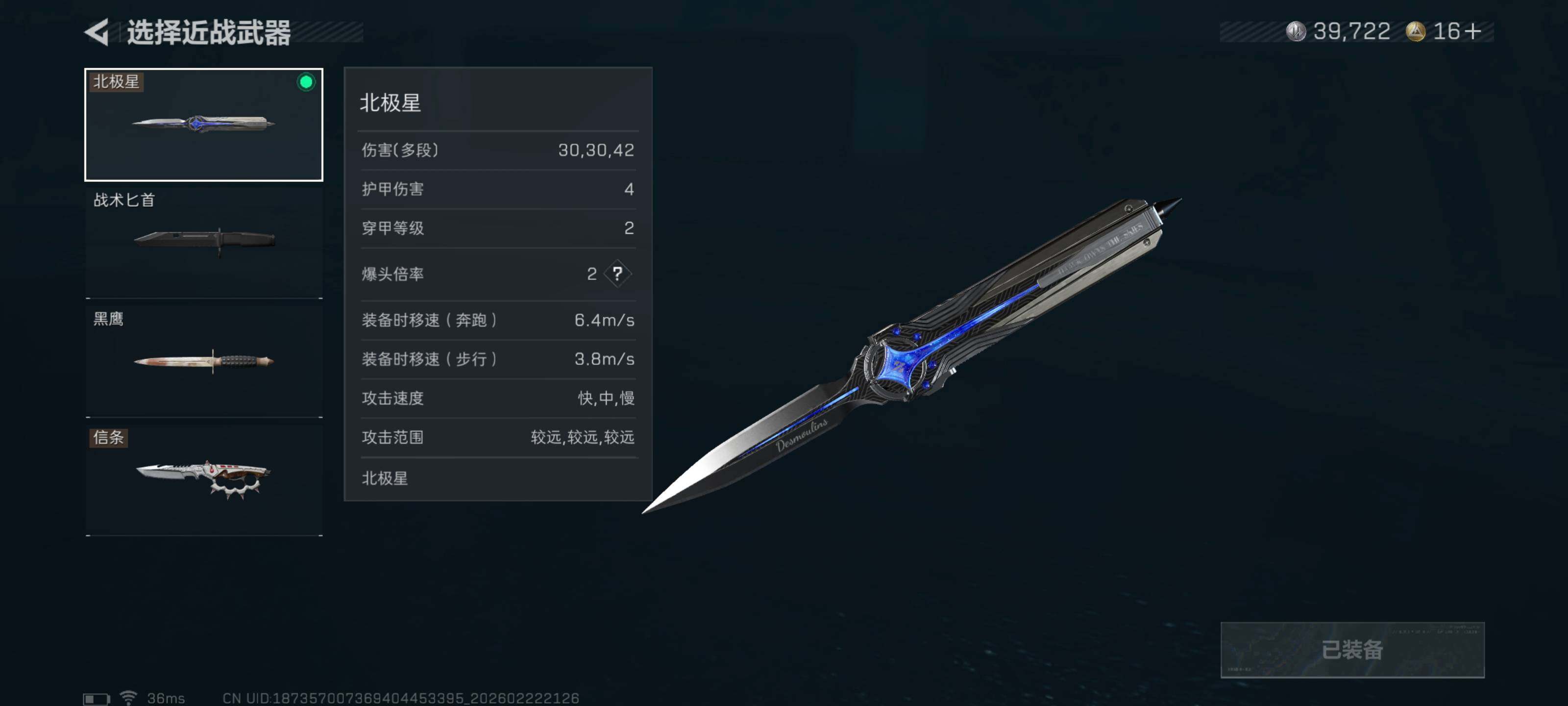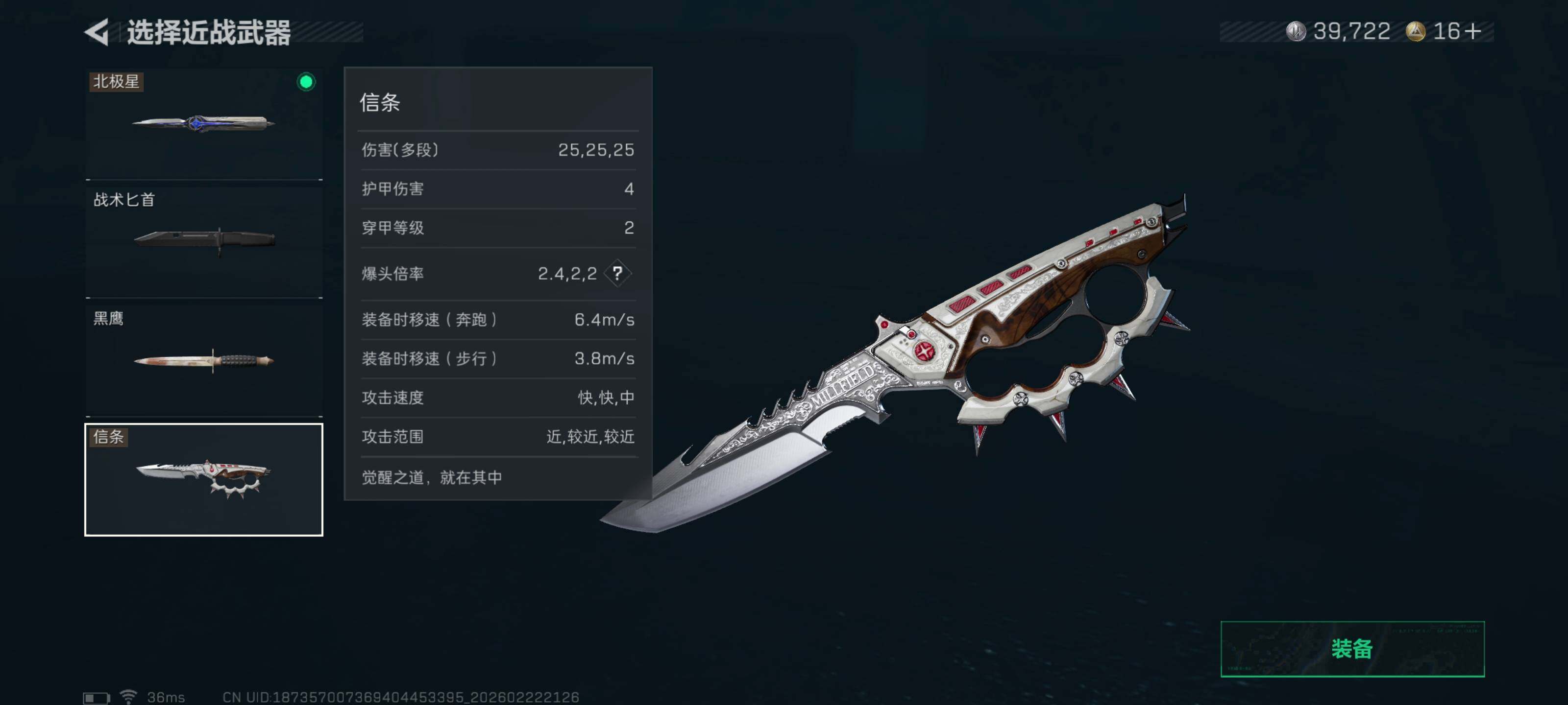 【近战皮肤】:近战-北极星,近战-信条,近战-黑鹰