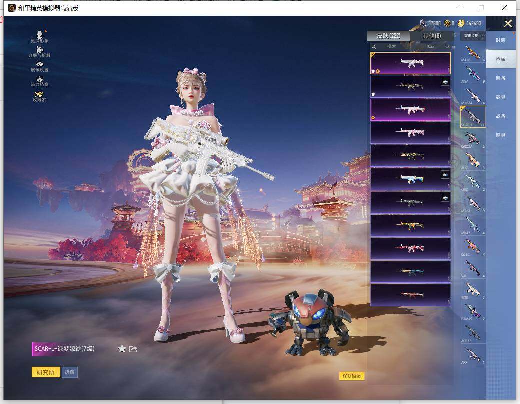 AKM-梦之光华,AKM-绿萝繁花,SCAR-L-纯梦嫁纱,SCAR-L-锦绣绵绵,M416-至情至圣,GROZA-镜光银凌,AUG-暖羊咩咩,UMP45-量子极限,Kar98K-巳巳如意
