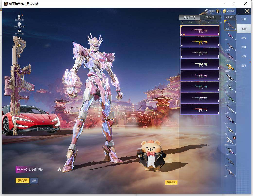 M416-仓鼠灰灰,M416-魔法学院,AUG-魔法学院,M762-潮萌小黄鸭,Kar98K-古堡领主,M249-古堡领主