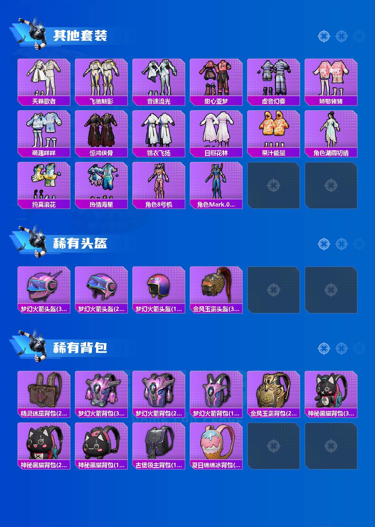 [17087630]安卓 手Q-5粉装-7特效枪-3载具-5粉色飞行器-68789热力值-15王牌印记-160套装-217枪皮 【热门品类】:粉装-梦幻火箭,套装-奇异狩猎者,套装-龟仙人,套装-浪漫波比,套装-粉红小猪,角色-8号机,角色-Mark.06 【粉色套装】:粉装-梦幻火箭,粉装-碧影闪光,粉装-闲梦青缨,角色-晶梦幻蝶,角色-罪夜之冕 【粉色枪皮等级】:SCAR-L-锦绣绵绵(五级),M416-风花雪月(七级),M762-青锋波束(五级),Kar98K-巳巳如意(五级),AWM-橘柚倾心(七级),DP-28-扶摇飞仙(七级),DP-28-豹影疾电(一级) 【粉色载具】:阿斯顿马丁DBS(红),合金龙骨(绿),双人摩托-梦幻火箭 【粉色枪皮】:SCAR-L-锦绣绵绵,M416-风花雪月,M762-青锋波束,Kar98K-巳巳如意,AWM-橘柚倾心,DP-28-扶摇飞仙,DP-28-豹影疾电 【粉色飞行器】:炫彩糖果飞行器,梦幻火箭飞行器,星之彼岸飞行器,幻梦之森飞行器,极意拳锋飞行器 【粉色降落伞】:梦幻火箭降落伞,炫紫旋律降落伞,神秘黑猫降落伞,香水柠檬降落伞,相思残雪降落伞,洛神天依降落伞,垂柳戏鸭降落伞,旋转彩虹降落伞,初号机 觉醒Ver.降落伞,月影灵韵降落伞,晶梦幻蝶降落伞,炫彩糖果降落伞 【稀有套装】:套装-龟仙人,套装-巳巳如意,套装-炫彩糖果,套装-雏菊兔兔,套装-萝兰蝴蝶,角色-俏兔智灵,套装-晶辉守护,套装-朱霞炽焰,套装-凌霄紫焰,套装-书海巡游,套装-画境星梦,套装-琴音绮想,角色-霜刃之御 【稀有枪皮】:AKM-四圣焕新,AKM-夜灯,AKM-彩虹符号,AKM-灼热熔岩,AKM-环太平洋,AKM-破晓战魂,AKM-筑梦精灵,AKM-虎虎生威,AKM-龙的传人,M16A4-夜灯,M16A4-幻世战舞者,M16A4-甜心亚梦,SCAR-L-扶摇飞仙,SCAR-L-炫彩节奏,SCAR-L-玉兔迎春,SCAR-L-繁花小夜曲,SCAR-L-黄金龙骨,M416-月影鸳鸯,M416-糯团青竹,M416-红色方程式,M416-黄金狮王,GROZA-治愈之星,GROZA-马卡龙,GROZA-晶梦幻蝶,AUG-怪笑疯兔,AUG-闲梦青缨,QBZ-原初圣火,QBZ-彩虹符号,QBZ-洛神天依,QBZ-电玩视界,QBZ-相思残雪,QBZ-神秘黑猫,QBZ-飞驰魅影,M
