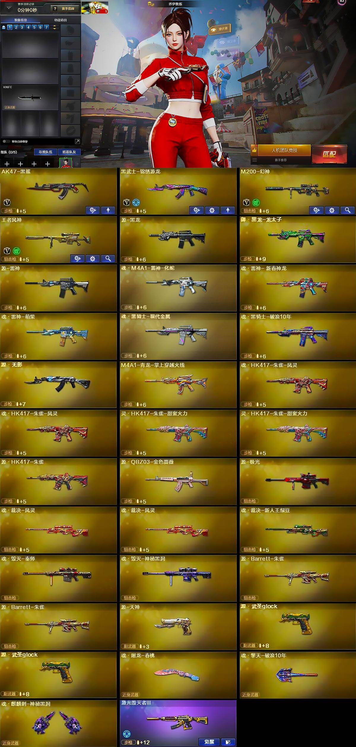 【英雄级武器】:AK47-黑鲨,黑武士-锦绣游龙,M200-幻神,王者风神-觉醒版
