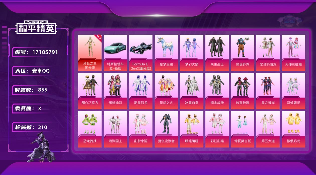 [17105791]【11361288】[11361288]WBDS0063 安卓Q 历史无敌战神 237套装 310枪皮 1神装29粉装18特效枪4载具 沙丘之主-图卡盟 (3级) M416-超新星 (9级) Formula(幽光蓝) 特斯拉R水滴蓝 星梦玉骢 空客蔚蓝之翼僚机 木乃伊 奇异狩猎者 赤蝎幽灵 AKM-百万伏特 都市猎人 浪漫天命 派对舞王 派对舞王(金靴子) 梦幻火箭 奇迹舞步美雪 奇迹舞步美琪 傲傲奶龙 宝贝奶油派 天使彩虹糖 甜心巧克力 荧海星豚 小叽联名款 怪诞乔克 守护天翼 幻彩电音 缤纷油彩 放客神游 仲夏莫吉托 未来战士 第五大道 新星烈龙 花间之火 绚金战神 冰霜白皇 暖熊萌萌 星之彼岸 甜梦小狐 彩虹甜喵 恐龙拽拽 彩虹鹿灵 复仇流浪者 海渊国主 SCAR-L-梦幻火箭 (4级) Famas-觉醒初号机 (4级) M416-五爪金龙 (1级) M416-墨龙九天 (1级) P90-沙丘之主 (3级) AKM-炫紫旋律 (5级) Kar98K-巳巳如意 (5级) DP-28-豹影疾电 (5级) 蜜獾-荧海星豚 (4级) GROZA-香水柠檬 (5级) UZI-绮梦青鸾 (4级) AUG-星之彼岸 (6级) M16A4-垂柳戏鸭 (4级) MG3-洛神天依 (7级) Vector-环太平洋 (5级) UMP45-恐龙拽拽 (5级) 破片手榴弹-热量炸弹 (7级) 龙翔九天飞行器 梦幻火箭飞行器 相思残雪飞行器 深渊漩涡飞行器 Mark.06 龟仙人 2B战斗服款 2P战斗服款 六号稻草人 红熊茄茄 东方飞龙 潮萌小黄鸭 鹰眼刺客 激萌罗小黑 迅捷狂鲨 深海小丑鱼 NV追光队服 NV战队服 梦起落英 暗影哥特 豚鼠丹丹 狂沙舞者 漫步者 破蛋小黄鸡 军刀雅典娜 英勇保护者 弄潮海豚 M762-奇异狩猎者 S686-奇异狩猎者 M24-香水柠檬 梦幻火箭头盔 甜心宝贝头盔 花间之火头盔 梦幻火箭背包 甜心宝贝背包 萌熊伴侣背包 深海小丑鱼背包 花间之火背包