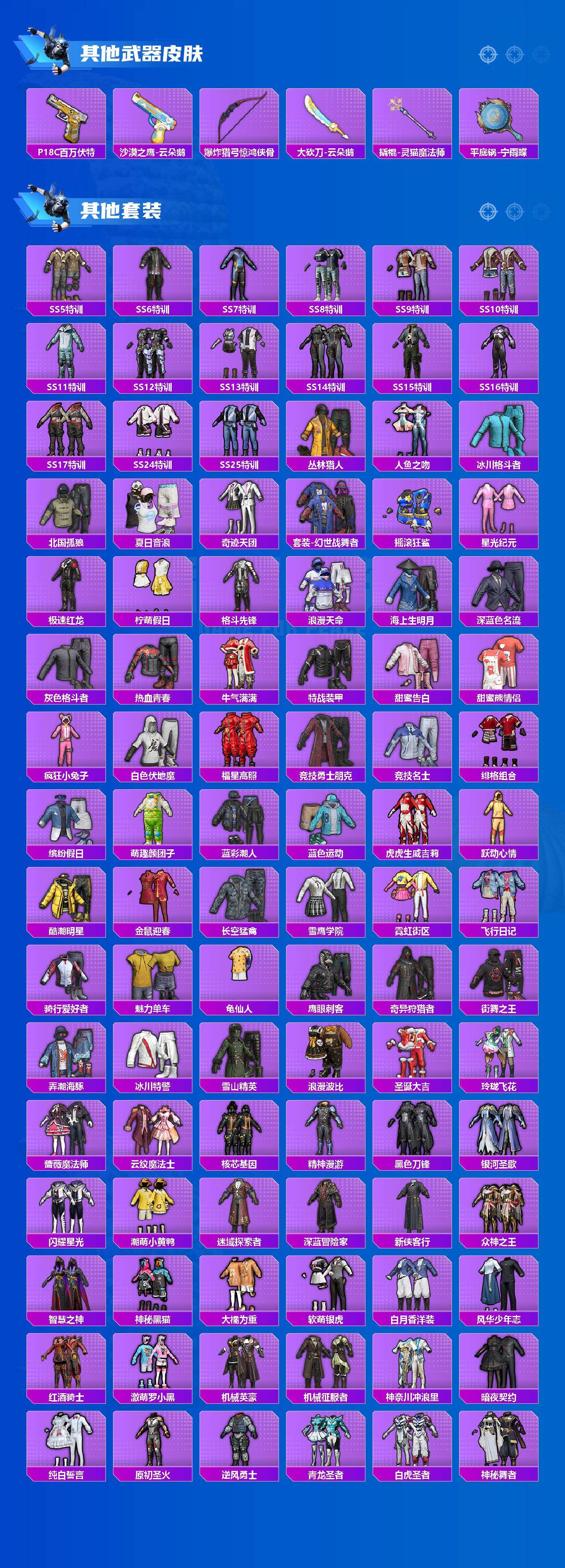 - [16329077]【店主推荐捡漏号!可直接换绑】安卓 手Q-2粉装-5特效枪-0载具-1粉色飞行器-25299热力值-2王牌印记-69套装-100枪皮 【热门品类】:套装-浪漫天命 【粉色套装】:粉装-炫光之旅,角色-绯穹魔姬 【粉色枪皮等级】:GROZA-镜光银凌(五级),AUG-暖羊咩咩(五级),Kar98K-巳巳如意(五级),MK12-雪月幻音(五级),DP-28-豹影疾电(五级) 【粉色枪皮】:GROZA-镜光银凌,AUG-暖羊咩咩,Kar98K-巳巳如意,MK12-雪月幻音,DP-28-豹影疾电 【粉色降落伞】:雪月幻音降落伞,异瞳寒姬降落伞,炫彩糖果降落伞 【稀有套装】:套装-巳巳如意,套装-雪国风尚,套装-糖糖葫芦,套装-青团波波,角色-都市丽猫,套装-燕燕于飞,套装-鱼渊荷华,套装-白辉玉蕊,套装-粉恋花,套装-紫幽梦,套装-蓝冰羽,套装-星渊小夜曲,角色-绛羽幽主,套装-炫彩糖果 【稀有枪皮】:AKM-破晓战魂,SCAR-L-夜灯,G36C-星穹咏叹调,AC-VAL-六号稻草人,UMP45-夜灯,UMP45-蓝色火焰,UMP45-极意拳锋,Vector-生命誓言,汤姆逊-炫彩节奏,AKS-74U-极光猎影,P90-巳巳如意,Kar98K-星穹咏叹调,M24-幻彩电音,M24-蓝晶绮麟,Mini14-耀粉歌者,Mk14-治愈之星,AMR-喜羊羊与灰太狼,S686-巳巳如意,S686-千金淑猫,S12K-夜灯,S12K-智耀战神,DBS-月影灵韵,M249-破晓战魂,DP-28-彩虹符号,P1911-动力核心,R1895-棋盘冕主,短管霰弹-星穹咏叹调,爆炸猎弓-喜羊羊与灰太狼,大砍刀-脆鲨七海,大砍刀-鬼刀,撬棍-冷漠罗丽,破片手榴弹-巳巳如意 【其他套装】:套装-冷焰舞者,套装-夏日倾情,套装-幻世战舞者,套装-旭日情侣,套装-暗金炫舞,套装-森林游猎者,套装-浪漫天命,套装-海岛探路者,套装-滨海厨神,套装-猎鹰,套装-猛禽,套装-王牌教练,套装-白色伏地魔,套装-破晓战魂,套装-竞技名士,套装-竞技达人朋克,套装-红色运动,套装-耀粉歌者,套装-街头潮人,套装-长空猛禽,套装-青年教官,套装-魅力单车,套装-黄色伏地魔,套装-黄色运动,套装-黑色伏地魔,套装-鹰眼刺客,套装-迅捷狂鲨,套装-冰川特警,套装-雪兔飞飞 【营地ID】:988752302