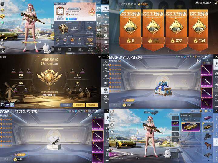 【粉色枪皮等级】:SCAR-L-纯梦嫁纱(七级),M416-五爪金龙(五级),Kar98K-巳巳如意(二级),MG3-洛神天依(七级)