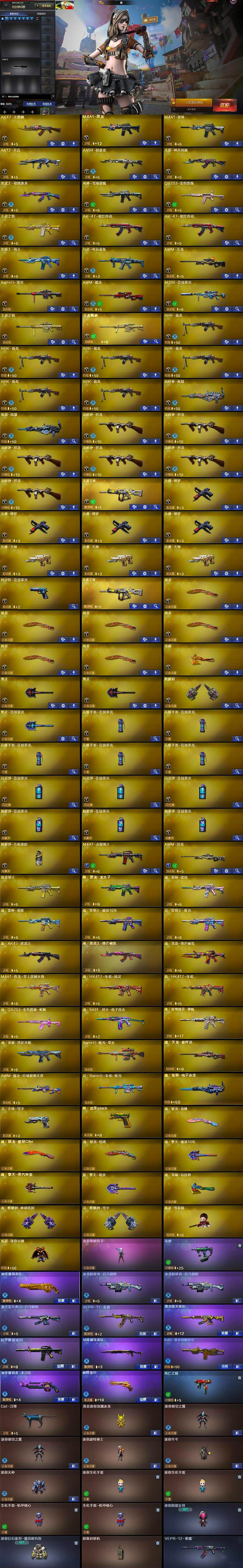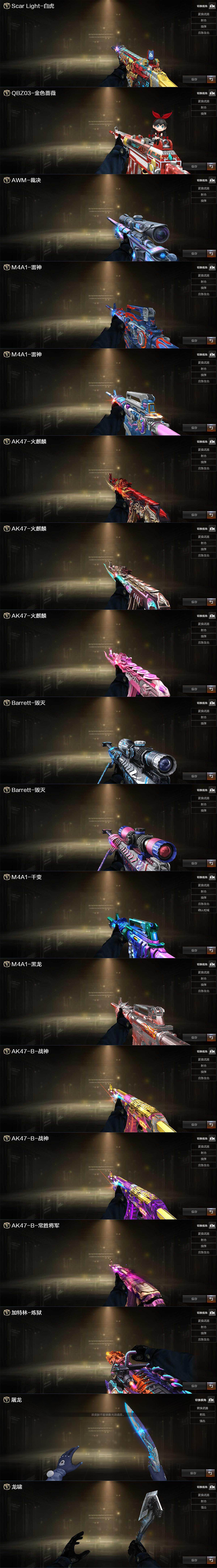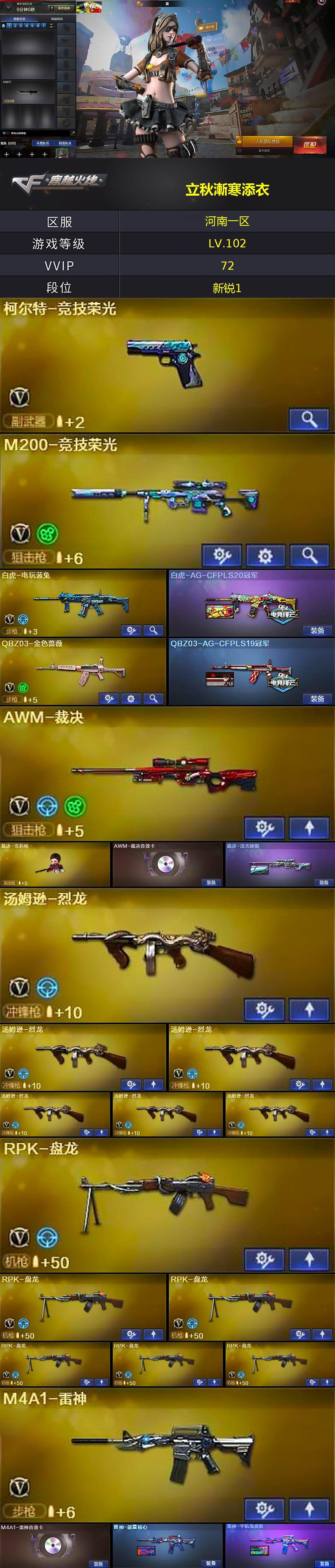 - [11530073]12V武器 可二次 可修改实名 优质装备:M200-幻神,传说辉光,Kar98k-星神,柯尔特-荣耀世冠白鲨2023,M4A1-黑龙,AWM-裁决,AK12-天启,屠龙 排位资格:有 王者武器:王者风神-觉醒版 热门武器:COP-白鲨