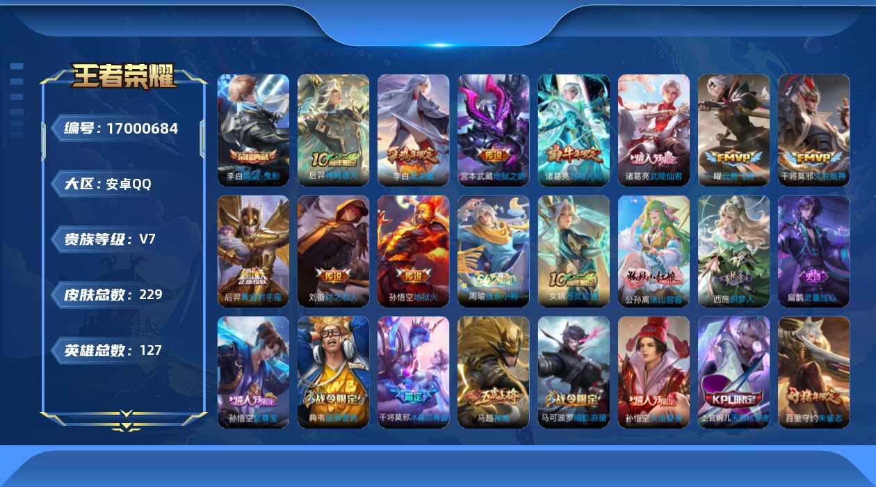 [17000684]安卓Q-229皮肤-1典藏皮肤-10传说-63史诗