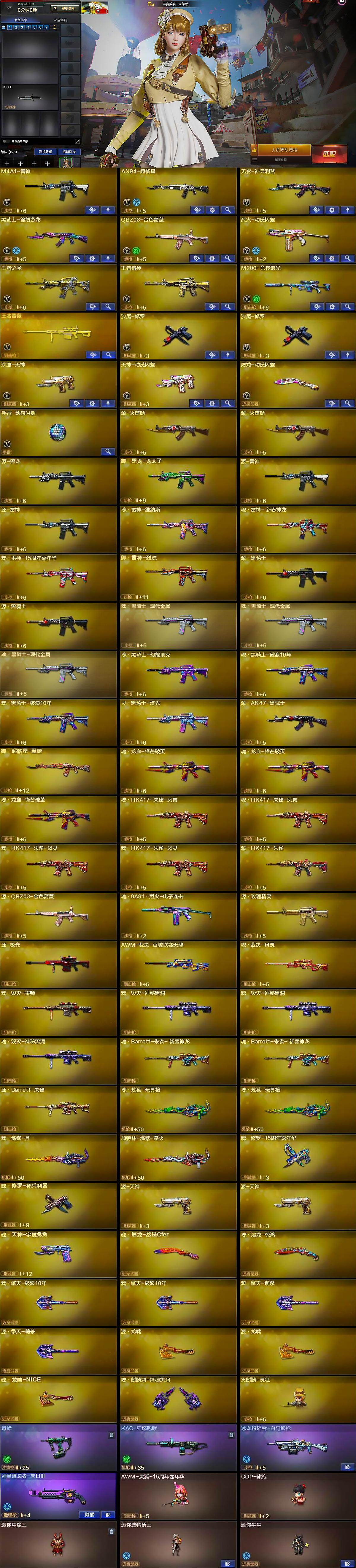 【英雄级武器】:M4A1-雷神,AN94-超新星,无影-神兵利器,黑武士-锦绣游龙,QBZ03-金色蔷薇,烈火-动感闪耀,王者之圣-觉醒版,王者猎神-觉醒版,M200-竞技荣光,王者蔷薇-觉醒版,沙鹰-修罗*2,沙鹰-天神,天神-动感闪耀,屠龙-动感闪耀,手雷-动感闪耀