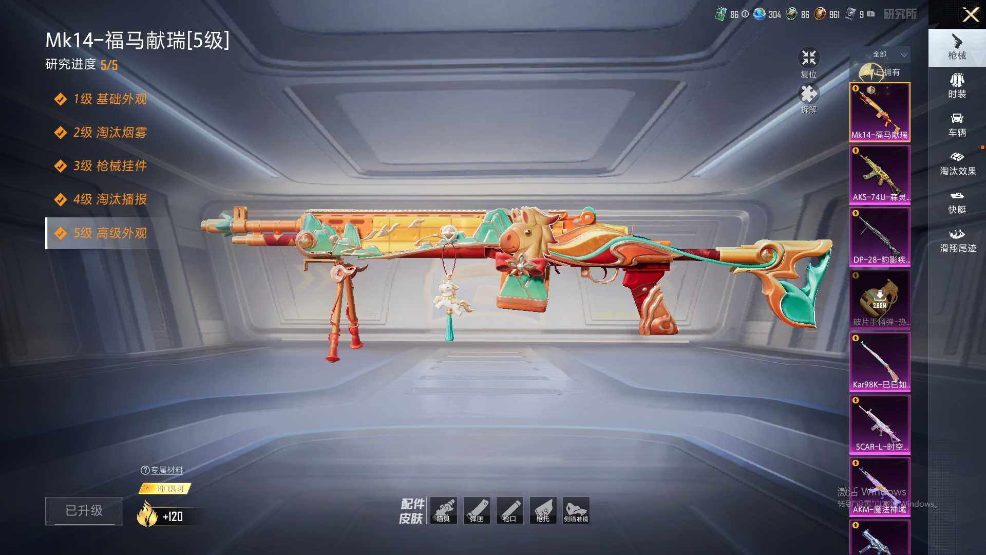 AKM-魔法神域,SCAR-L-时空协奏,M416-电玩时刻,UMP45-量子极限,Kar98K-巳巳如意,破片手榴弹-热量炸弹