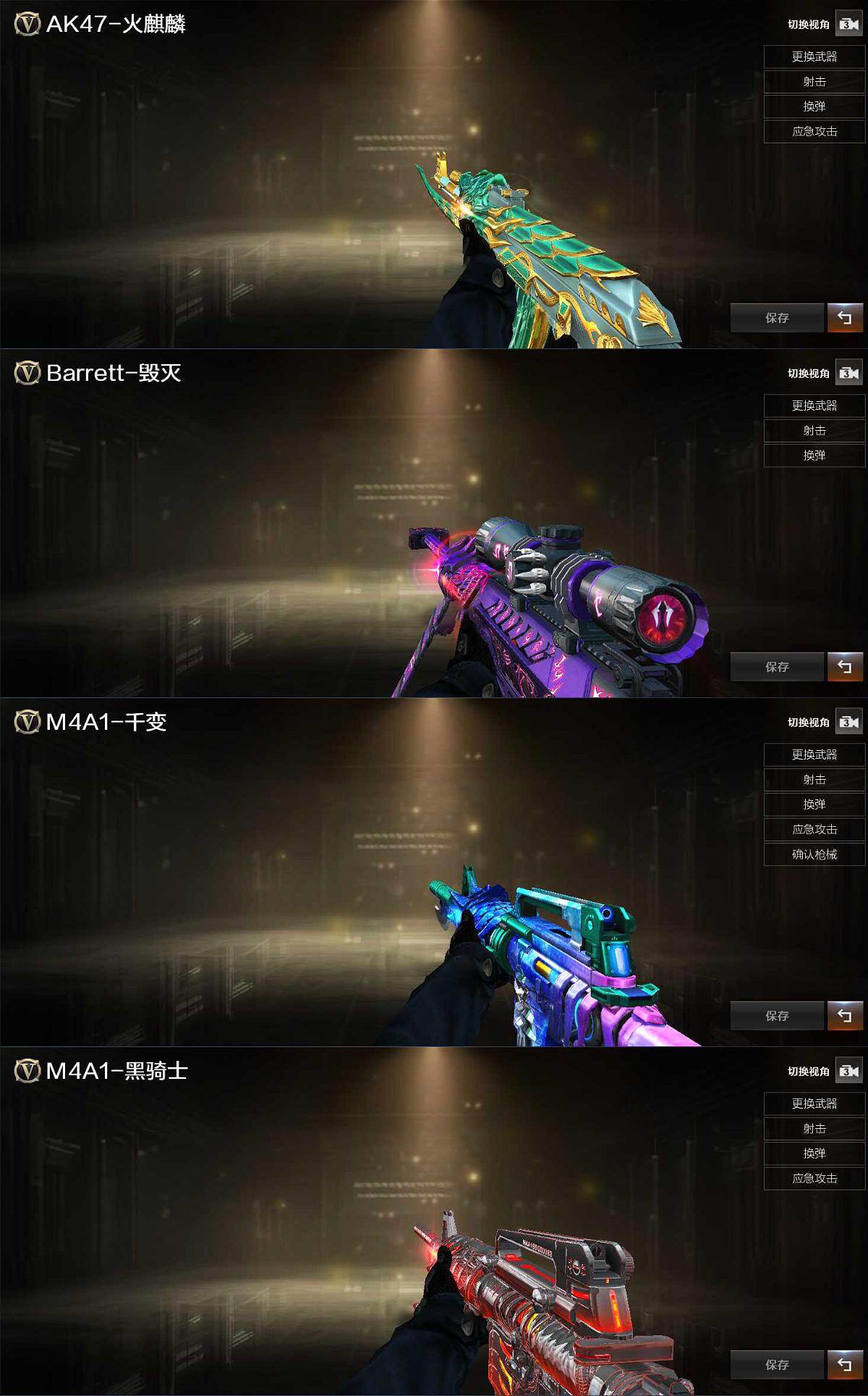 【皮肤】:火麒麟-傲竹金蛇 皮肤,毁灭-魔灵皮肤,M4A1-千变-孔明皮肤,黑骑士-暗月