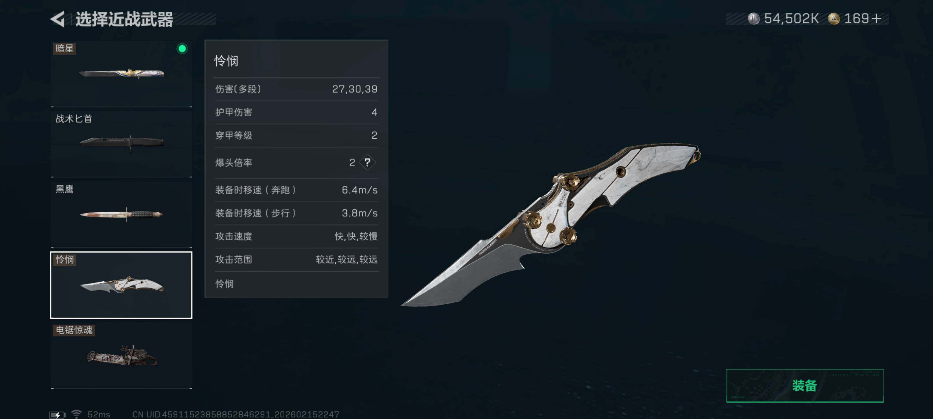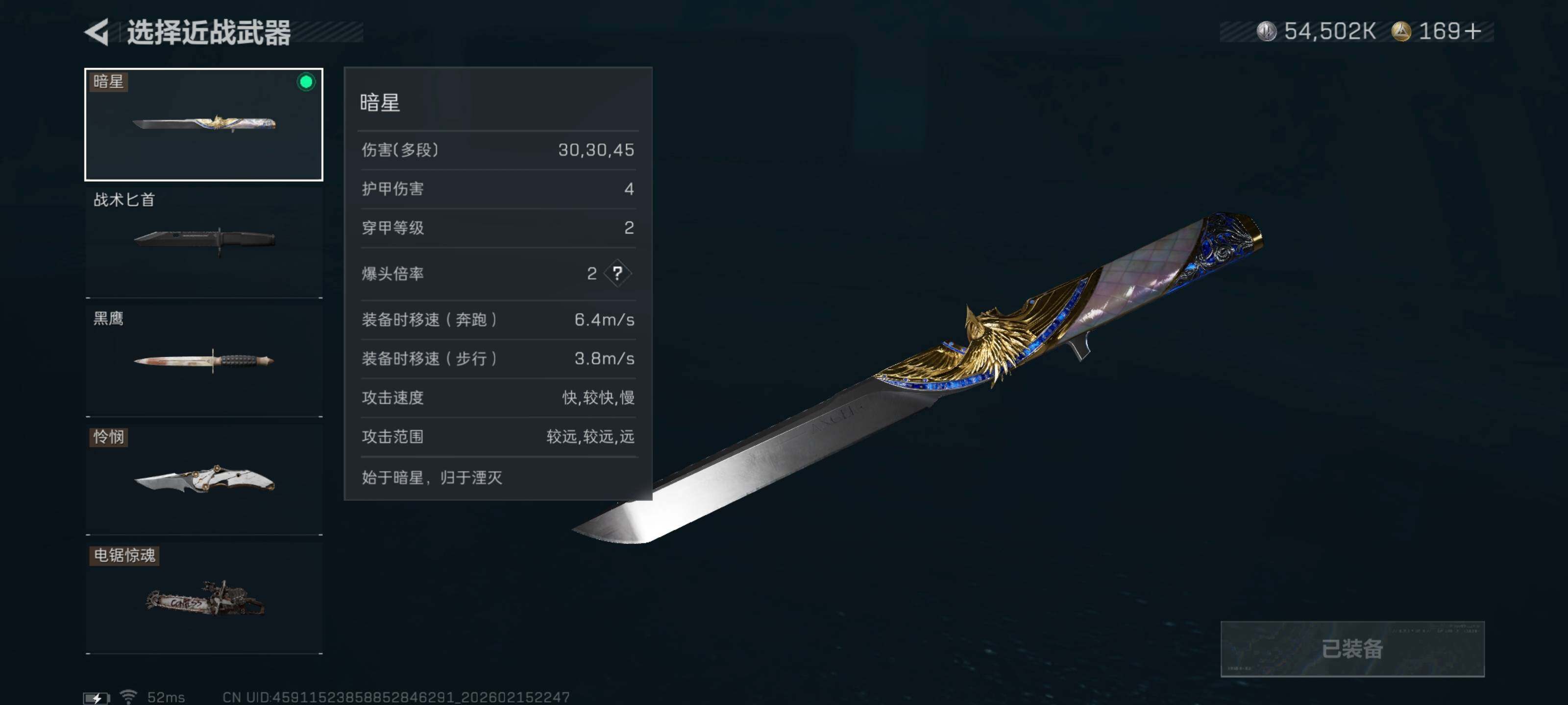 【近战皮肤】:近战-暗星,近战-怜悯,近战-电锯惊魂,近战-黑鹰