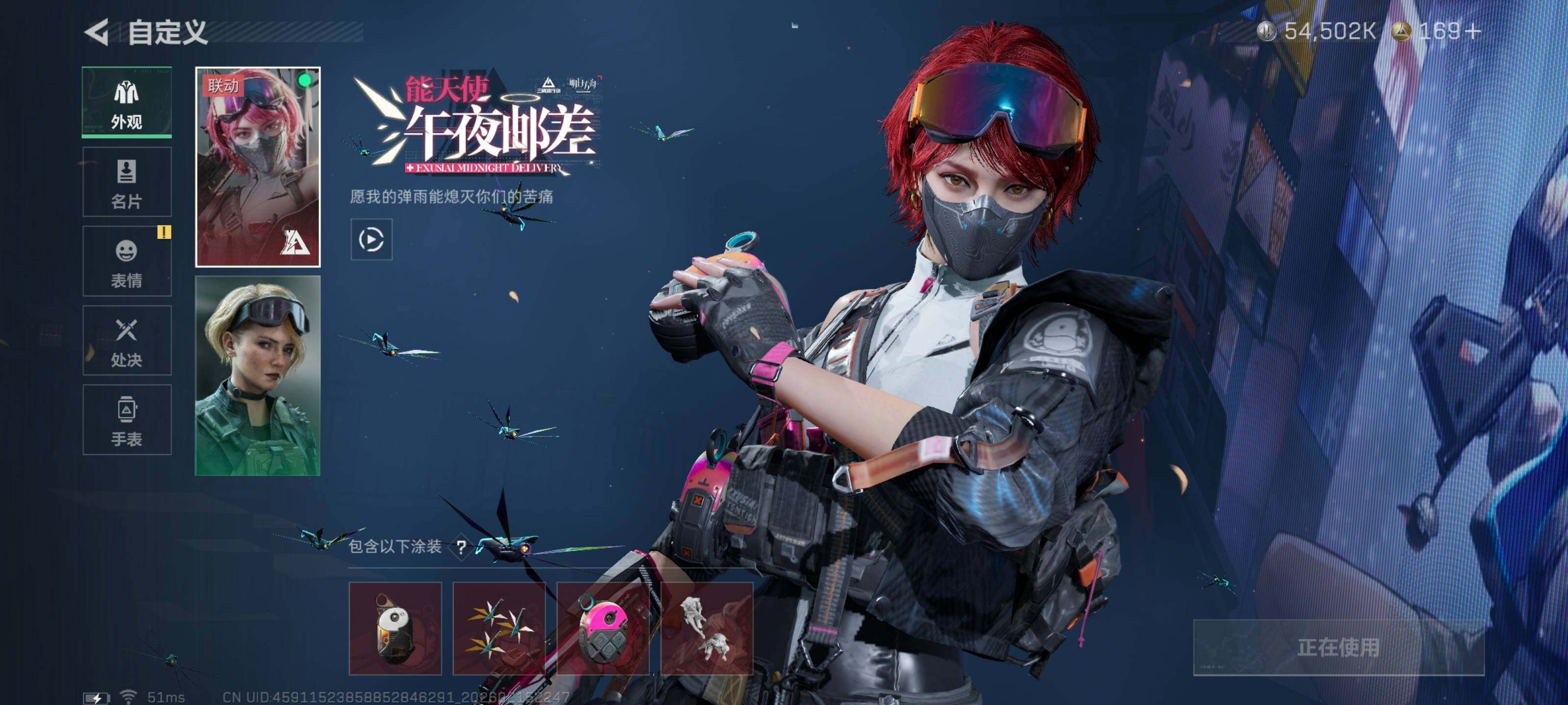 【干员外观】:红狼-蚀金玫瑰,蛊-能天使午夜邮差,威龙-凌霄戍卫,红狼-电锯惊魂,露娜-金牌射手