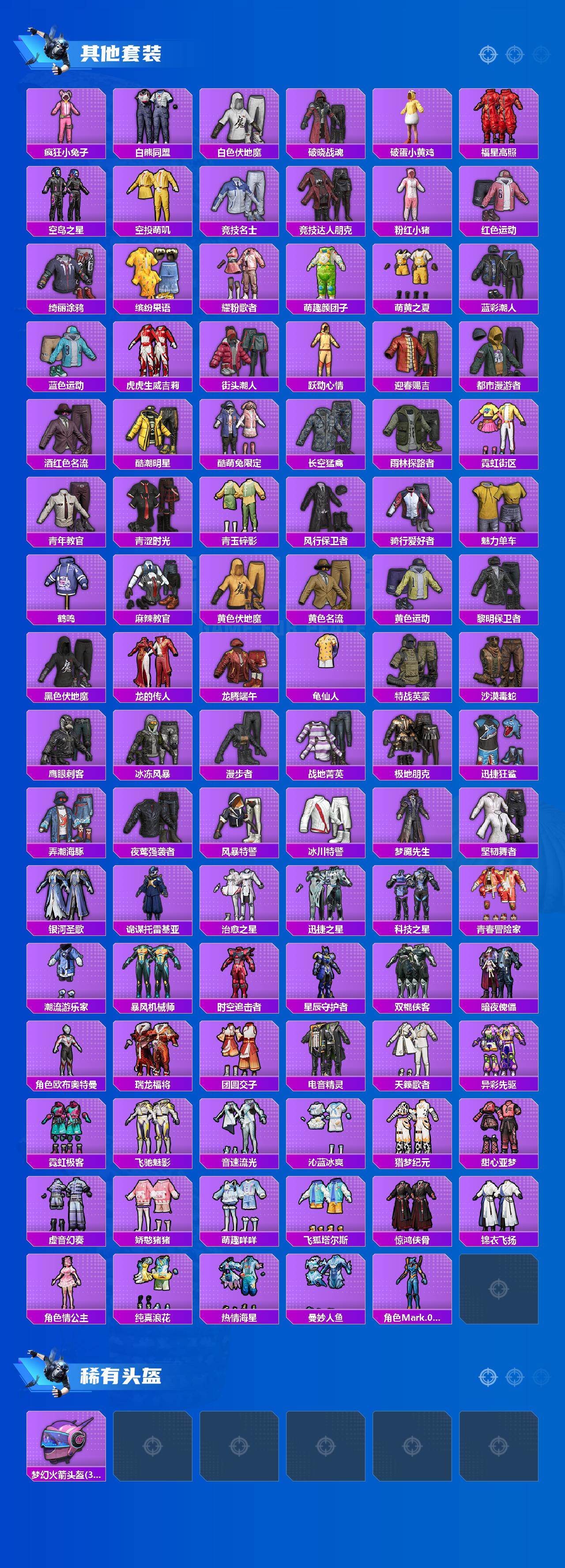 套装-梦幻火箭,套装-都市猎人,套装-暗夜玫瑰,套装-炙焰牛王,角色-樱桃泡泡,套装-鹰眼刺客,套装-迅捷狂鲨,套装-梦魇先生