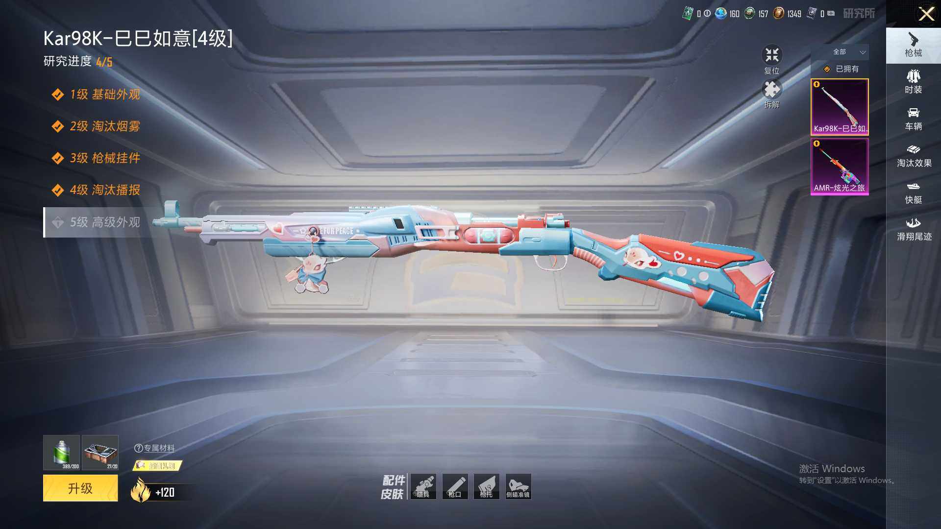 【粉色枪皮等级】:Kar98K-巳巳如意(四级),AMR-炫光之旅(七级)